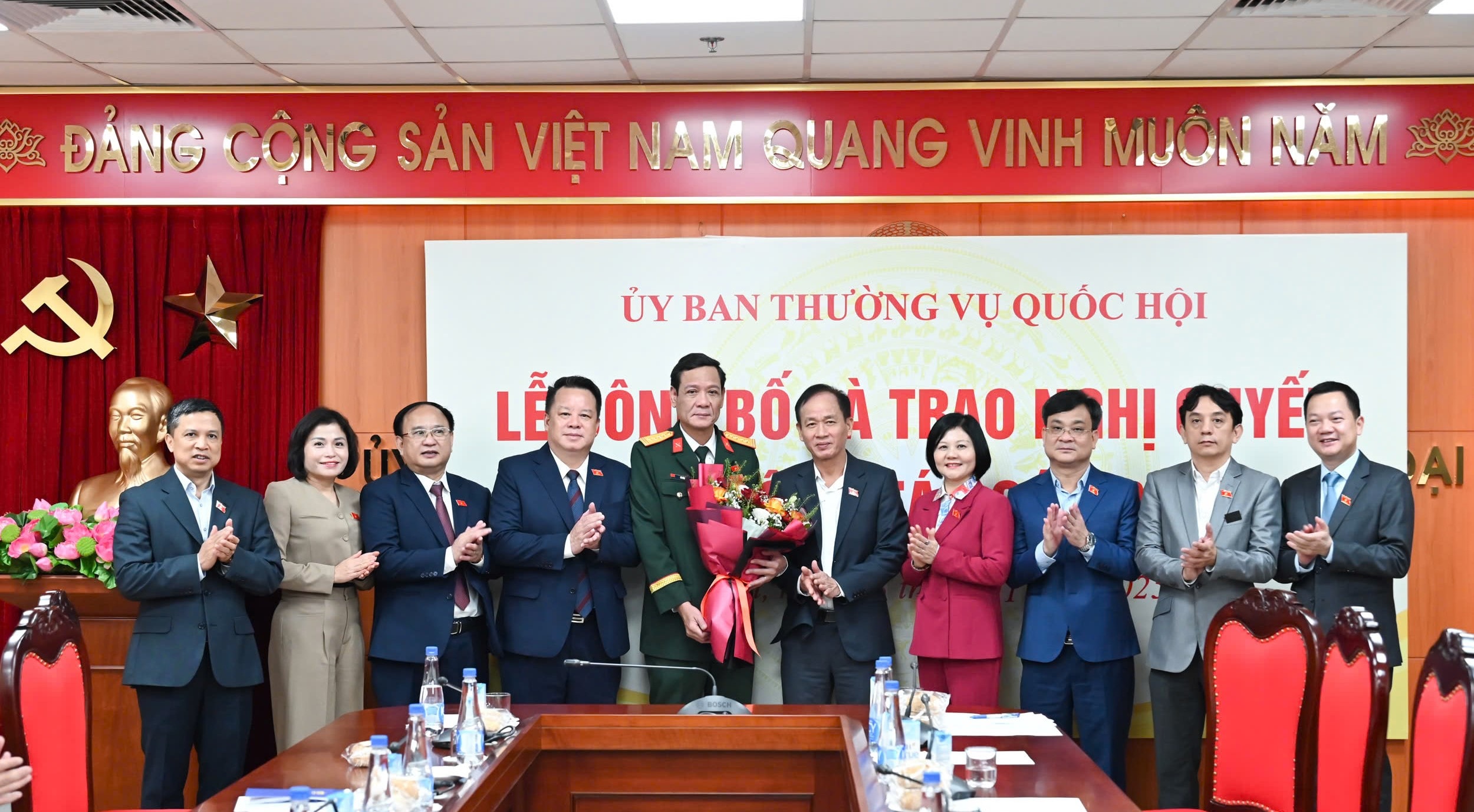 Phó Chủ tịch Quốc hội nhấn mạnh, việc phê chuẩn này thể hiện sự tin tưởng, tín nhiệm của Ủy ban Thường vụ Quốc hội, Quân ủy Trung ương, Bộ Quốc phòng đối với cá nhân đồng chí Võ Văn Hội.
