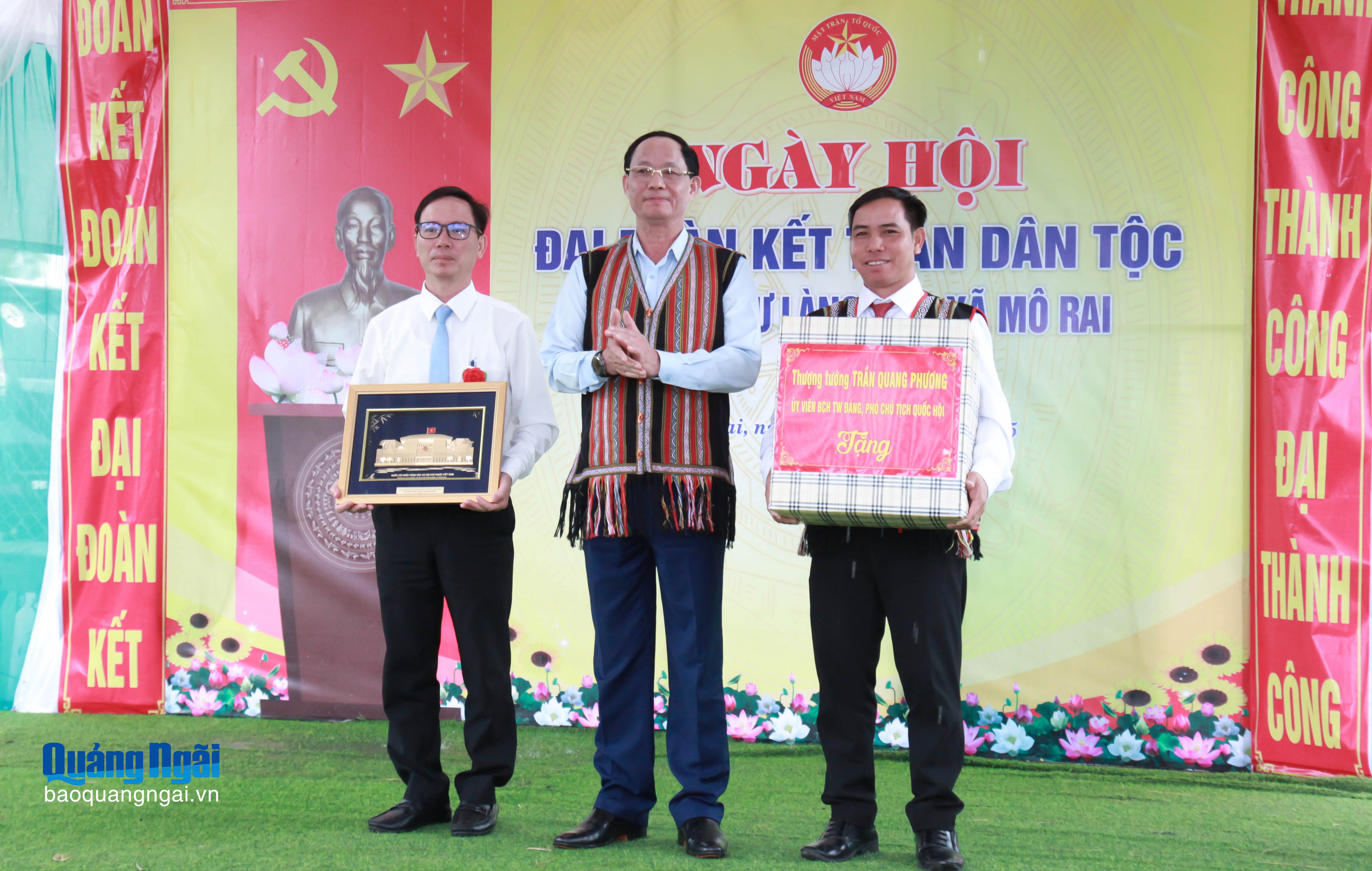 Dịp này, Phó Chủ tịch Quốc hội Trần Quang Phương và Đoàn công tác đã trao quà cho xã Mô Rai, Làng Xộp vì có thành tích tiêu biểu trong xây dựng khối đại đoàn kết toàn dân, xây dựng nông thôn mới vùng biên.