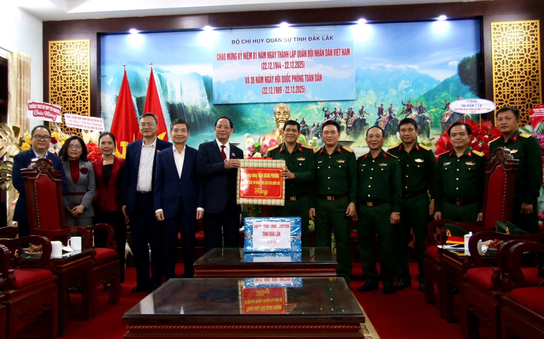 Phó Chủ tịch Quốc hội, Thượng tướng Trần Quang Phương tặng quà Bộ Chỉ huy Quân sự tỉnh Đắk Lắk dịp kỷ niệm 81 năm Ngày thành lập Quân đội nhân dân Việt Nam (22/12/1944 - 22/12/2025) và 36 năm Ngày quốc phòng toàn dân (22/12/1989 - 22/12/2025)
