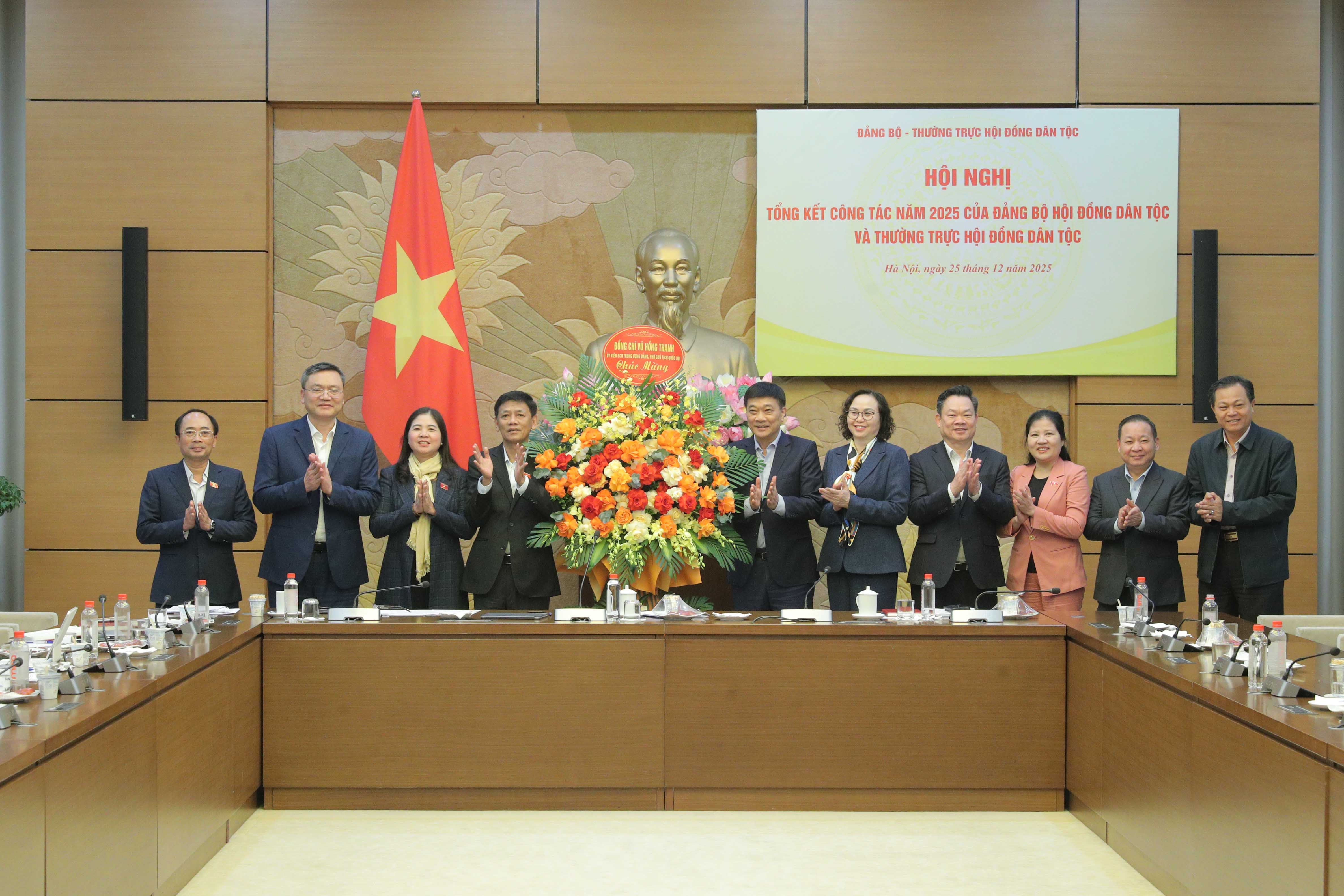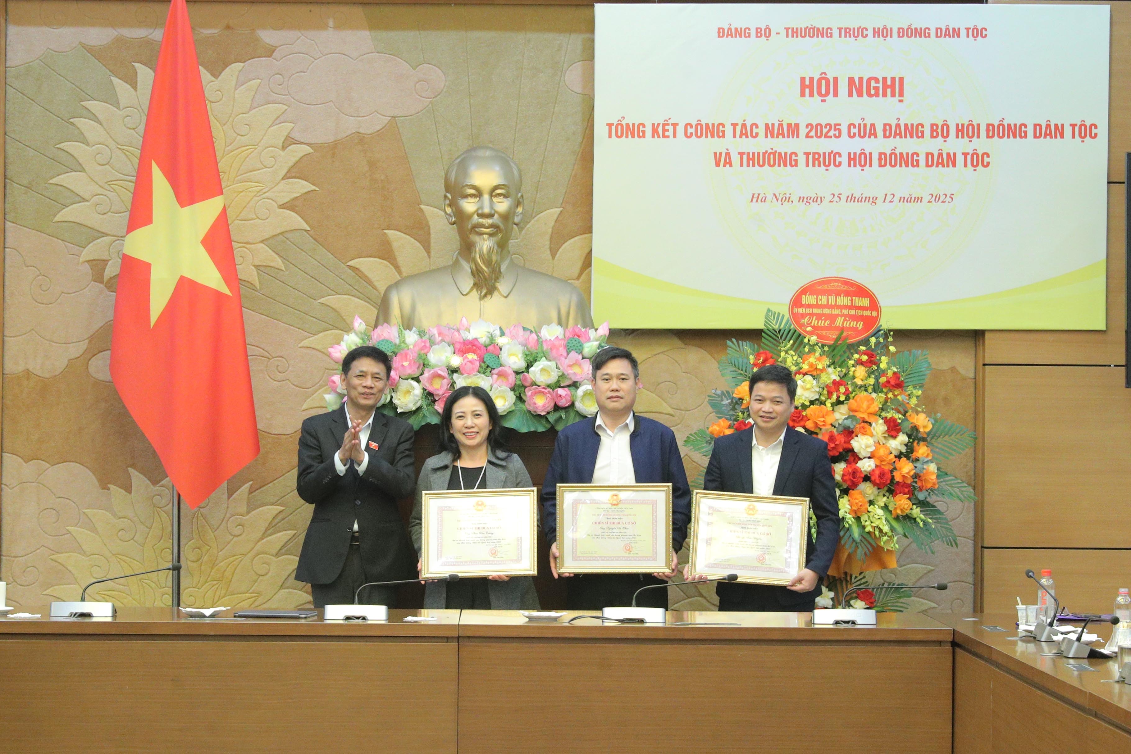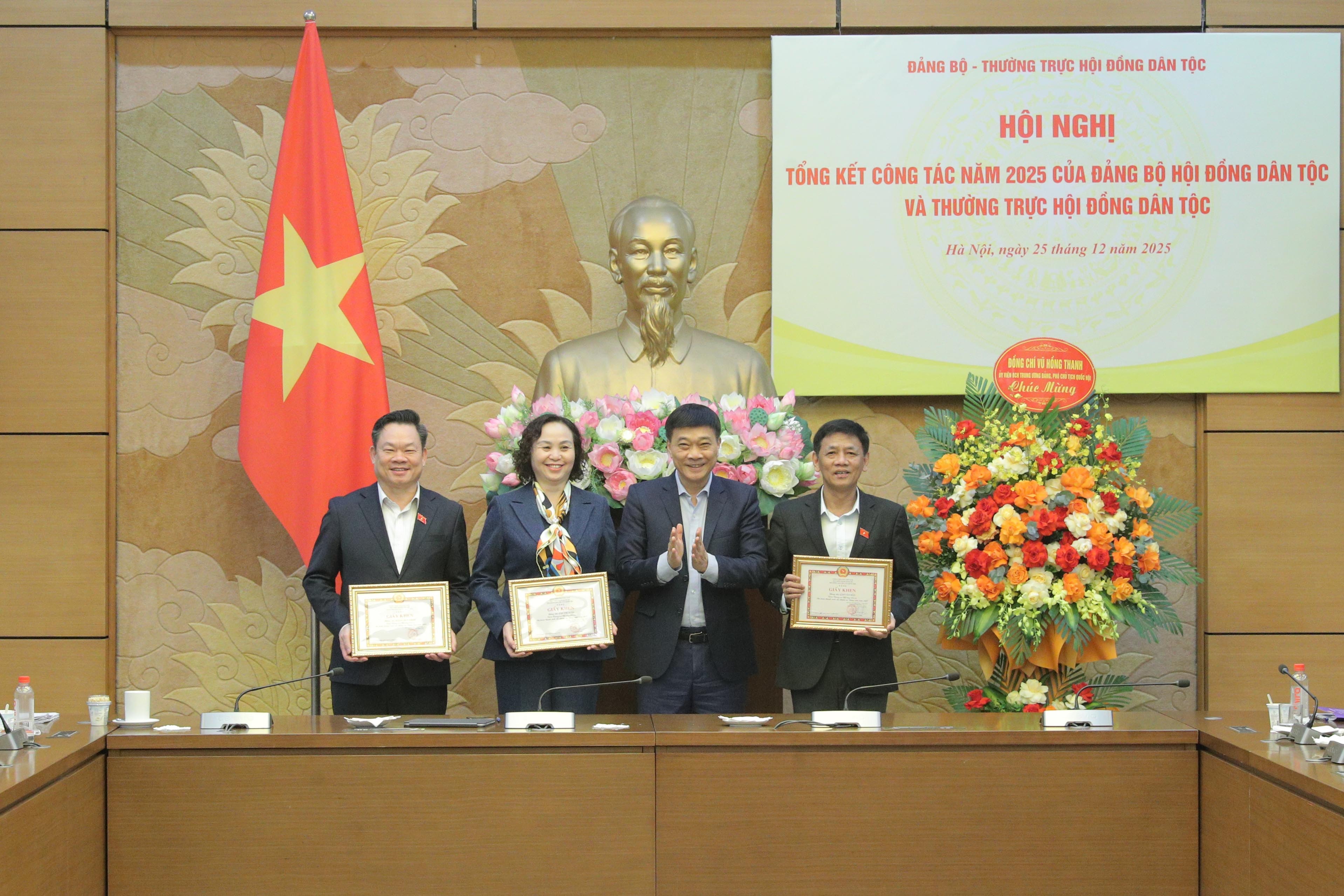 Tại hội nghị, Phó Chủ tịch Quốc hội Vũ Hồng Thanh đã trao Giấy khen của Đảng ủy Hội đồng Dân tộc tặng: tập thể Chi bộ Thường trực Hội đồng Dân tộc hoàn thành xuất sắc nhiệm vụ năm 2025 và 3 đảng viên hoàn thành xuất sắc nhiệm vụ, gồm: Bí thư Đảng ủy Lâm Văn Mẫn, Phó Bí thư Thường trực Đảng ủy Hoàng Duy Chinh, Ủy viên Ban Chấp hành Đảng ủy Cao Thị Xuân.