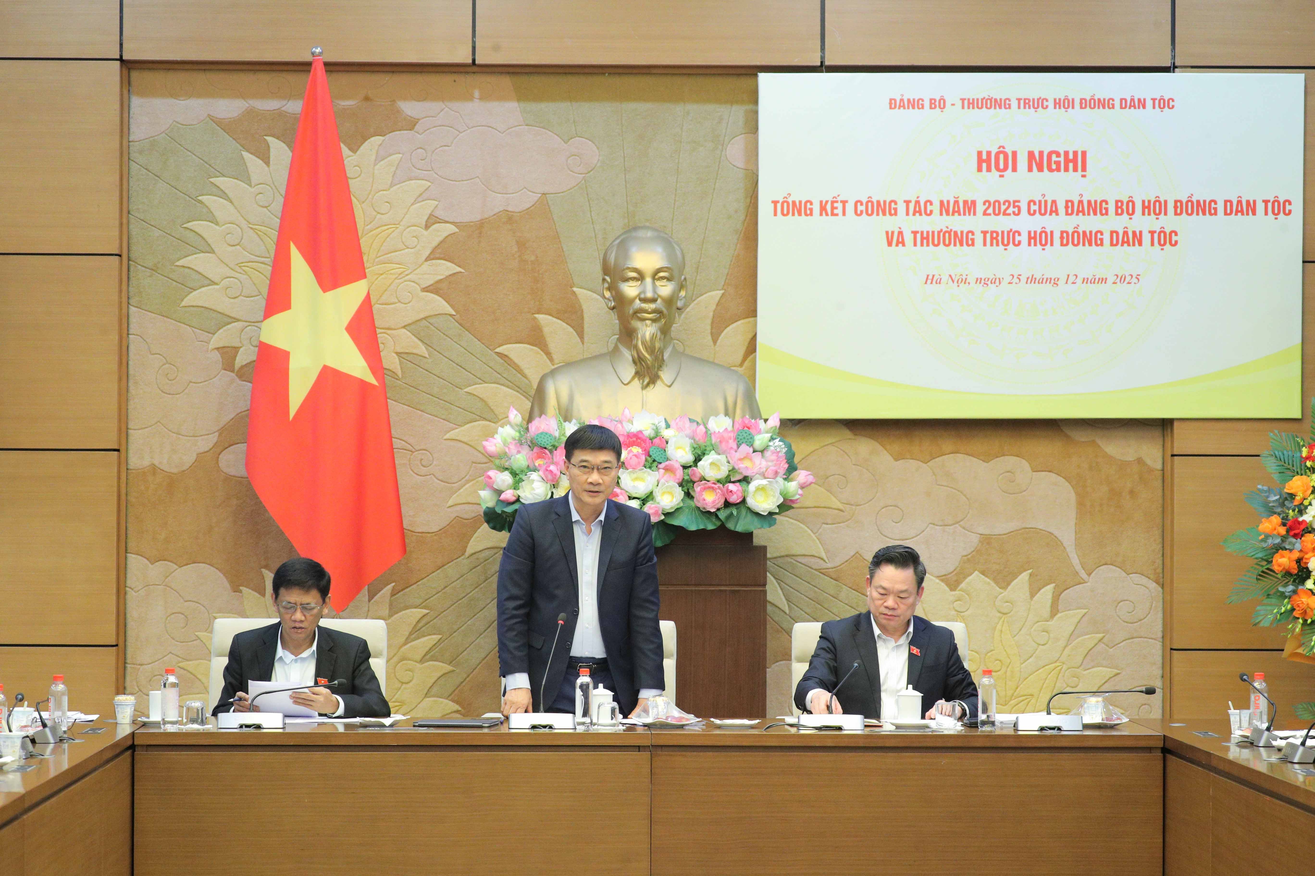 Phát biểu tại Hội nghị, Phó Chủ tịch Quốc hội Vũ Hồng Thanh ghi nhận, đánh giá cao và biểu dương các kết quả nổi bật trong công tác năm 2025 của Đảng bộ và Thường trực Hội đồng Dân tộc.