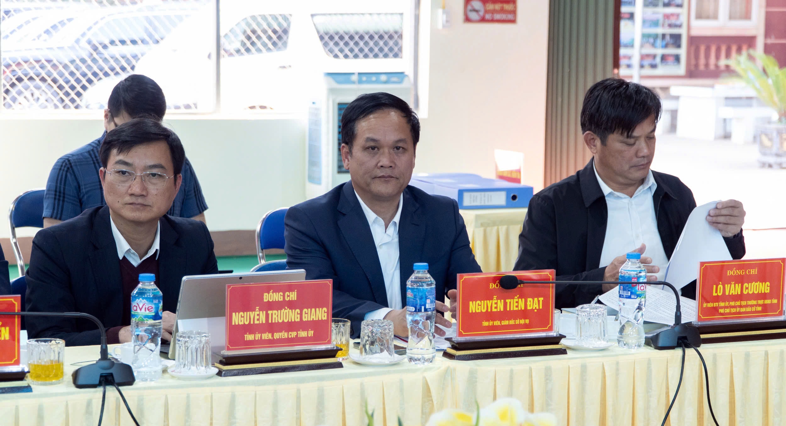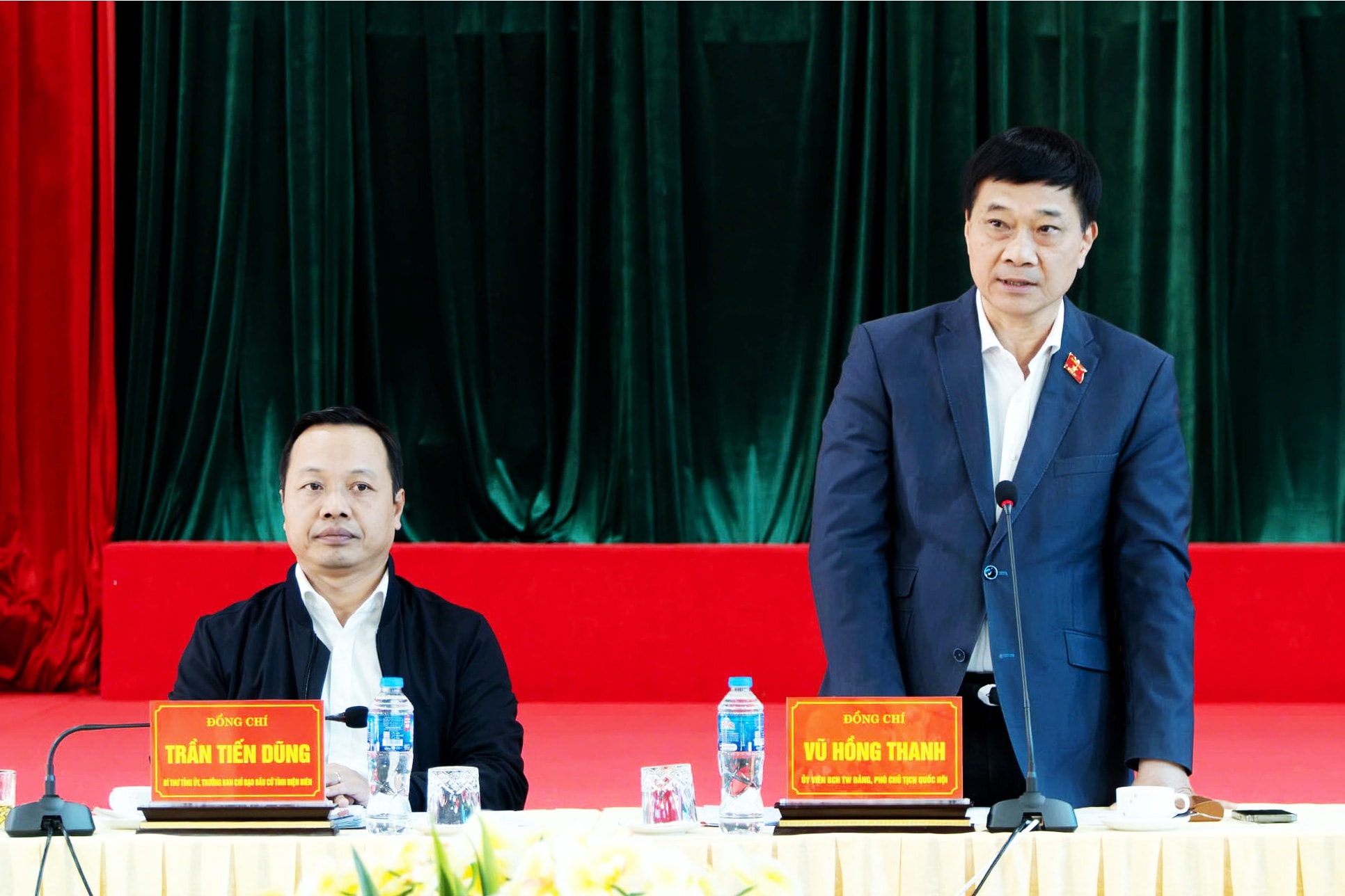Về phía tỉnh Điện Biên có: Bí thư Tỉnh ủy, Trưởng Ban chỉ đạo bầu cử tỉnh Trần Tiến Dũng; đại diện UBND tỉnh, Đoàn ĐBQH tỉnh và các sở, ngành có liên quan.
