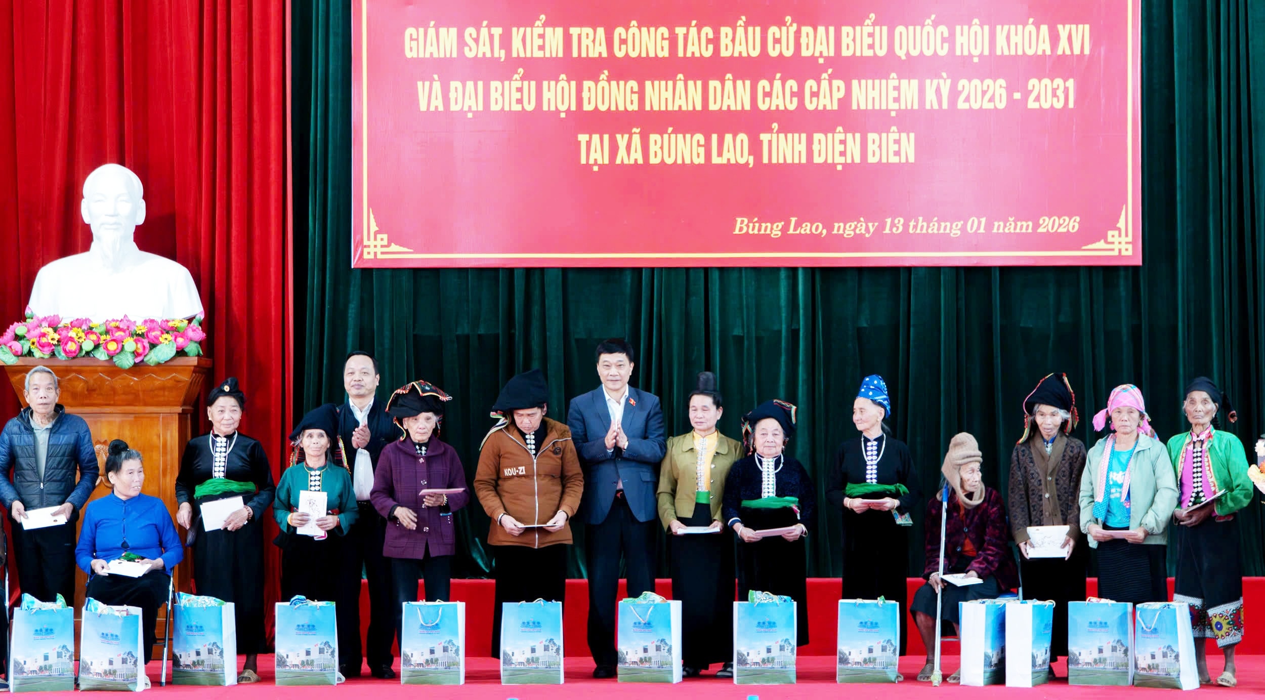Nhân dịp này, tại Điện Biên, Phó Chủ tịch Quốc hội Vũ Hồng Thanh đã ân cần thăm hỏi và trao quà tặng 50 gia đình người có công với cách mạng, hộ nghèo trên địa bàn xã Búng Lao.