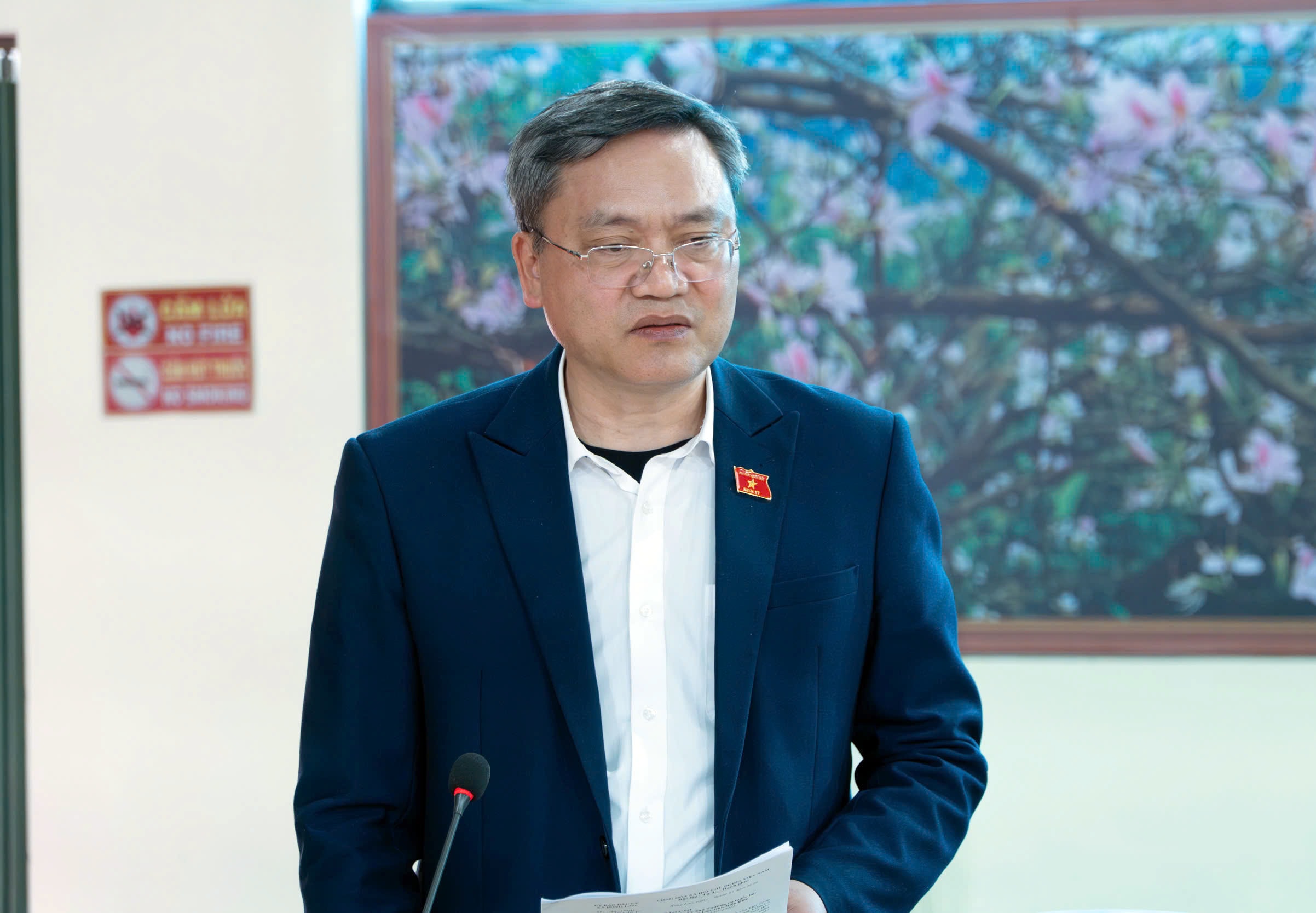Phó Chủ tịch Hội đồng Dân tộc Quàng Văn Hương phát biểu