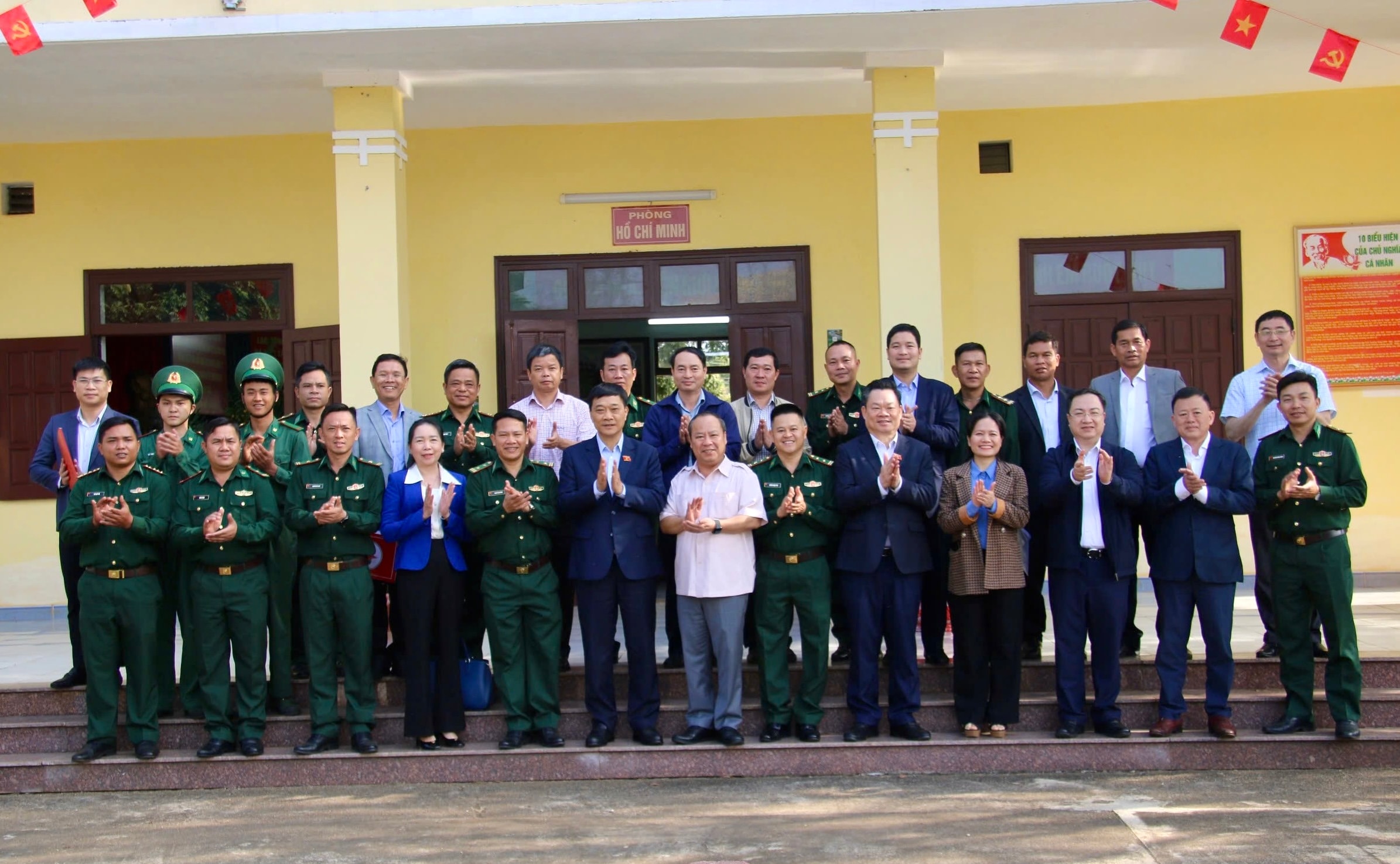 Phó Chủ tịch Quốc hội Vũ Hồng Thanh và các đại biểu chụp ảnh lưu niệm cùng cán bộ, chiến sĩ Đồn Biên phòng Ia O