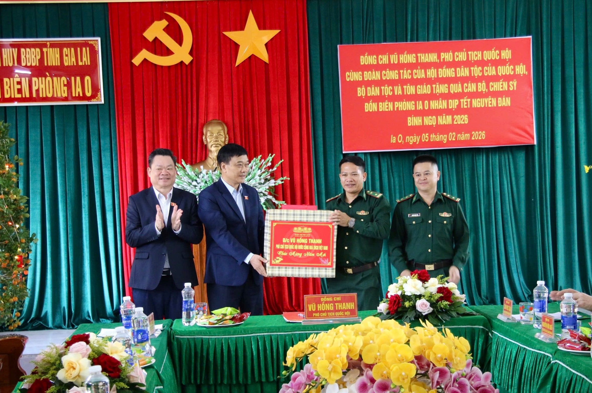 Nhân dịp này, Phó Chủ tịch Quốc hội Vũ Hồng Thanh đã trao quà Tết tặng Đồn Biên phòng Ia O; Phó Chủ tịch Thường trực Hội đồng Dân tộc Hoàng Duy Chinh và lãnh đạo tỉnh Gia Lai trao quà chúc Tết cán bộ, chiến sĩ đơn vị.