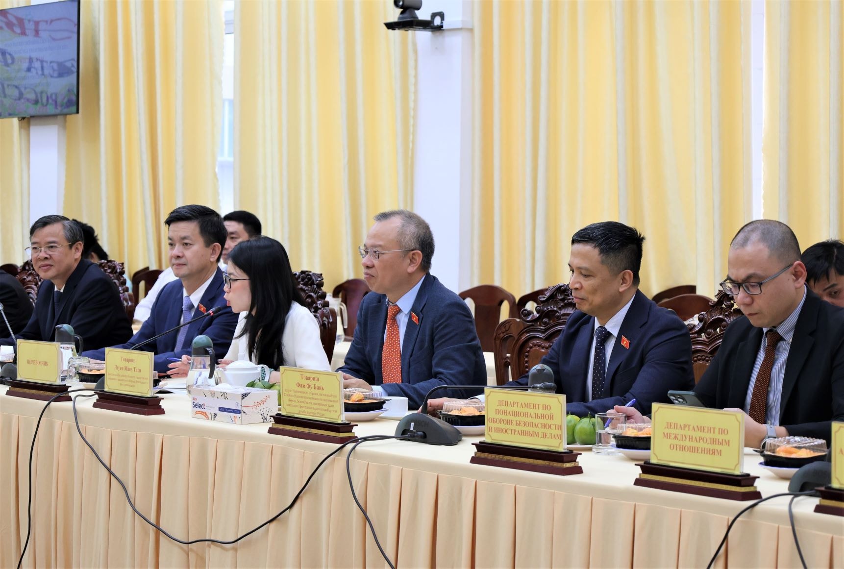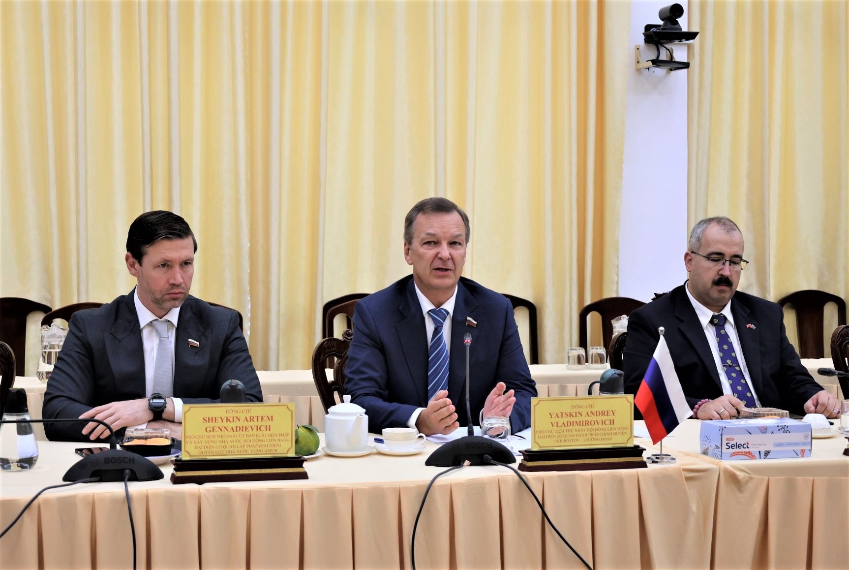 Phó Chủ tịch thứ nhất Hội đồng liên bang Quốc hội Liên bang Nga khẳng định, Hội đồng liên bang ủng hộ và mong muốn tăng cường mối quan hệ Đối tác chiến lược toàn diện giữa hai nước; cho biết Hội đồng liên bang đã thành lập Nhóm Nghị sĩ hữu nghị, Nhóm hợp tác với Quốc hội Việt Nam.