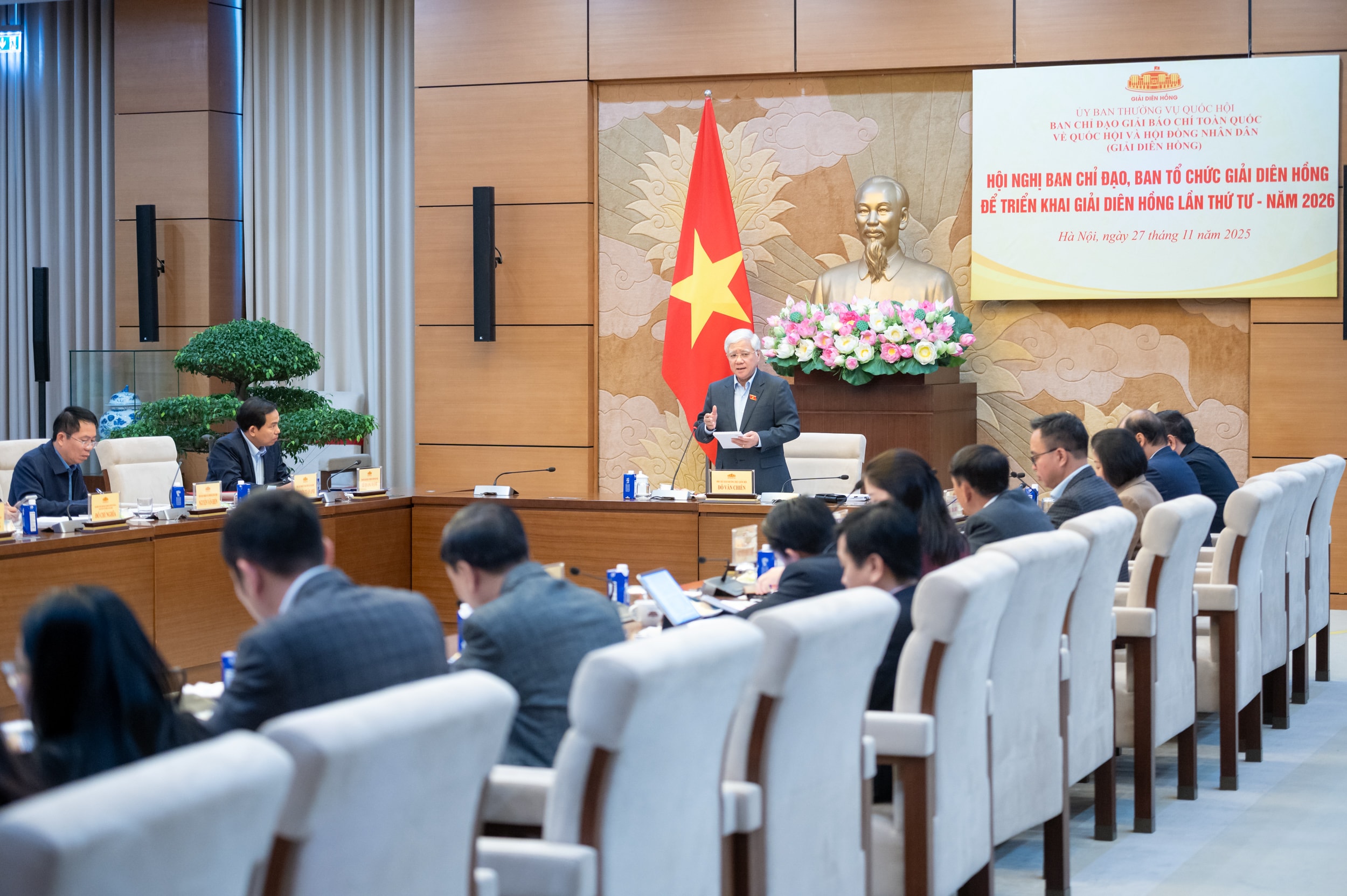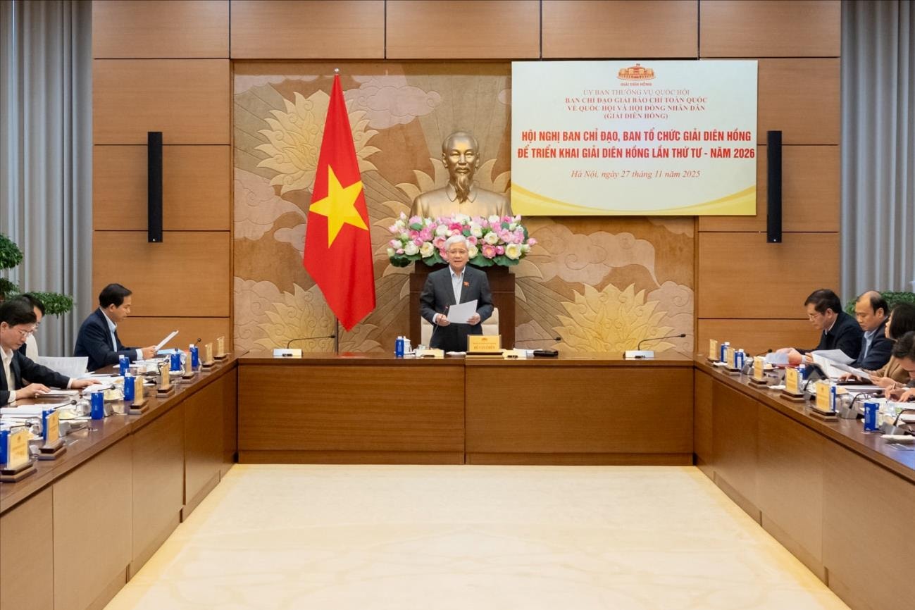 "Trong quá trình triển khai thực hiện, nếu có vấn đề gì vướng mắc, các đồng chí thông tin đến Văn phòng Quốc hội tổng hợp báo cáo Ban Chỉ đạo Giải Diên Hồng để kịp thời giải quyết, góp phần tổ chức thành công Lễ trao Giải Diên Hồng lần thứ tư - năm 2026", Phó Chủ tịch Thường trực Quốc hội nhấn mạnh.