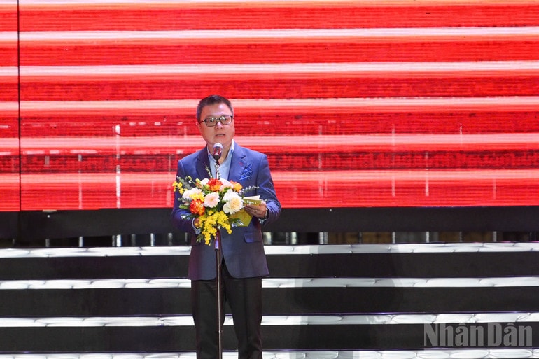 Tổng Biên tập Báo Nhân Dân, Phó Trưởng Ban Tuyên giáo và Dân vận Trung ương, Chủ tịch Hội Nhà báo Việt Nam Lê Quốc Minh phát biểu. Ảnh: Thế Đại