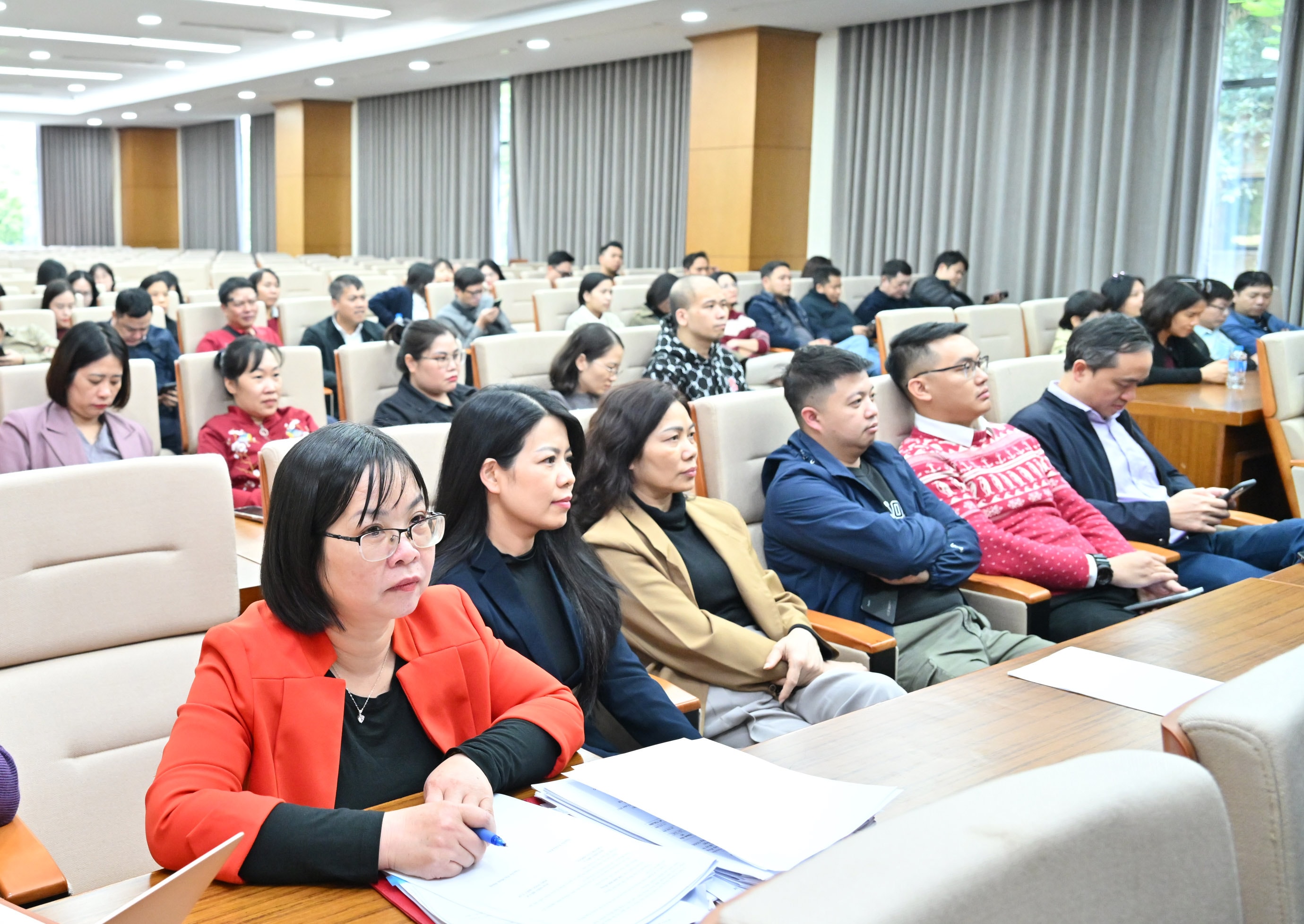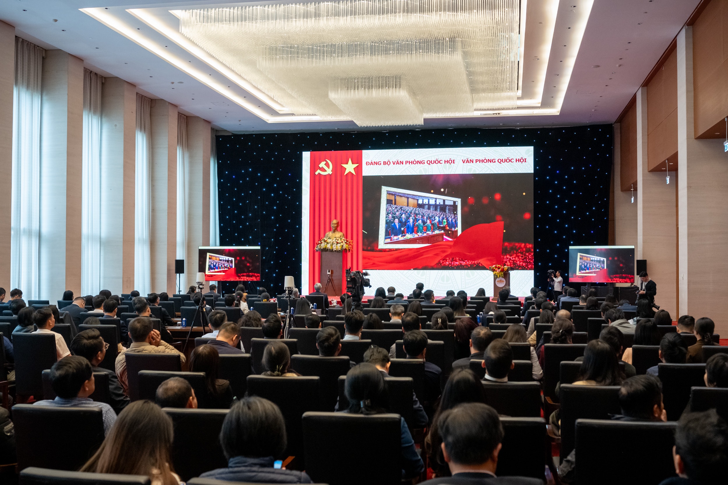 Toàn cảnh Hội nghị tổng kết công tác của Đảng bộ VPQH và công tác chuyên môn VPQH năm 2025; triển khai nhiệm vụ năm 2026 tại điểm cầu 35 Ngô Quyền, Hà Nội. Ảnh: Quang Khánh
