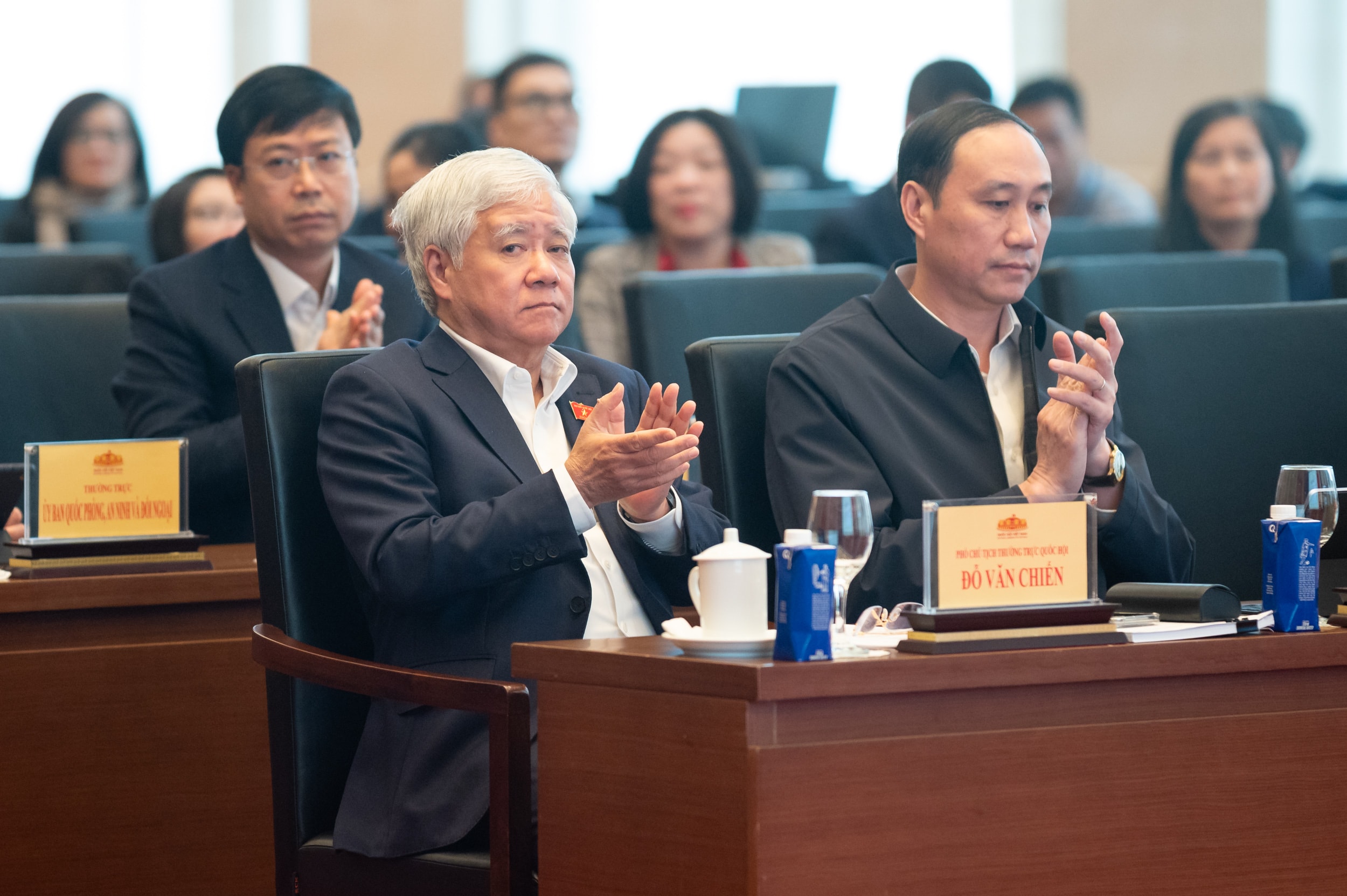 Phó Bí thư Thường trực Đảng ủy Quốc hội, Phó Chủ tịch Thường trực Quốc hội Đỗ Văn Chiến; Phó Chủ tịch Quốc hội Lê Minh Hoan và các đại biểu dự hội nghị. Ảnh: Phạm Thắng