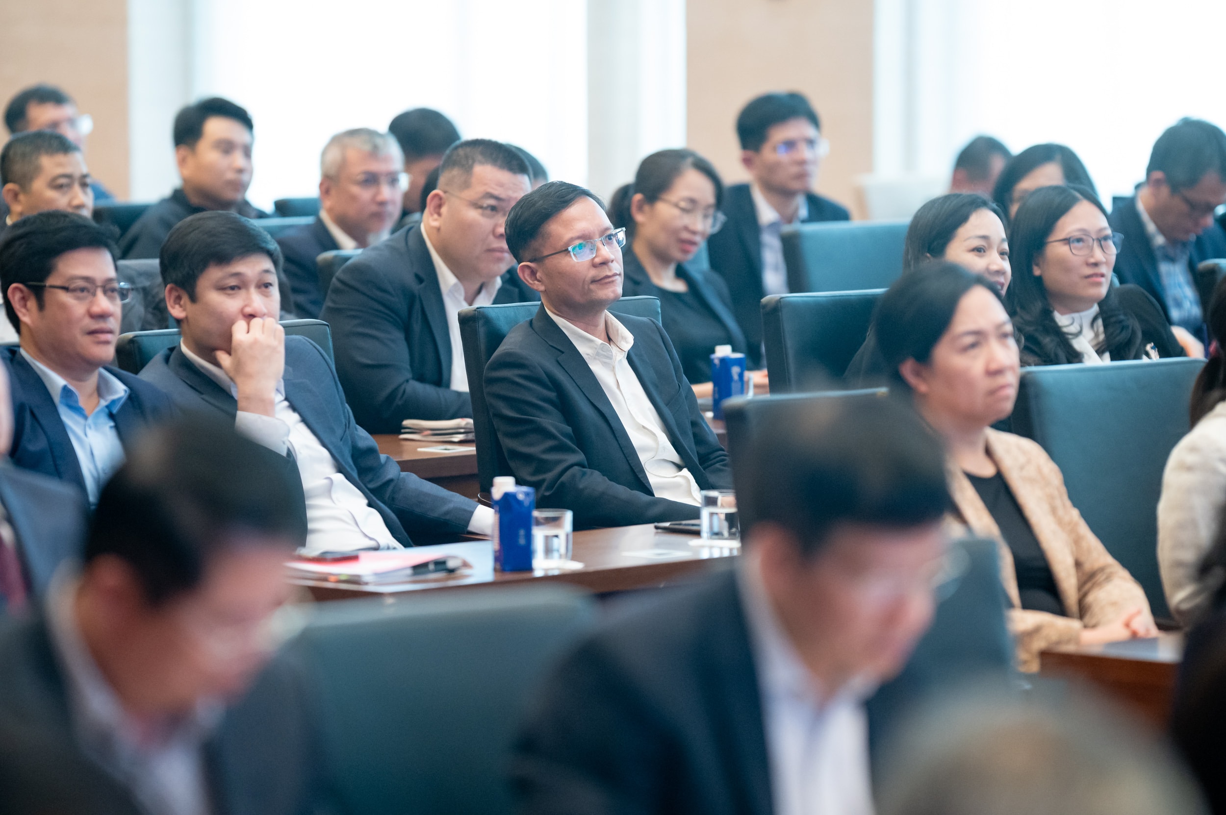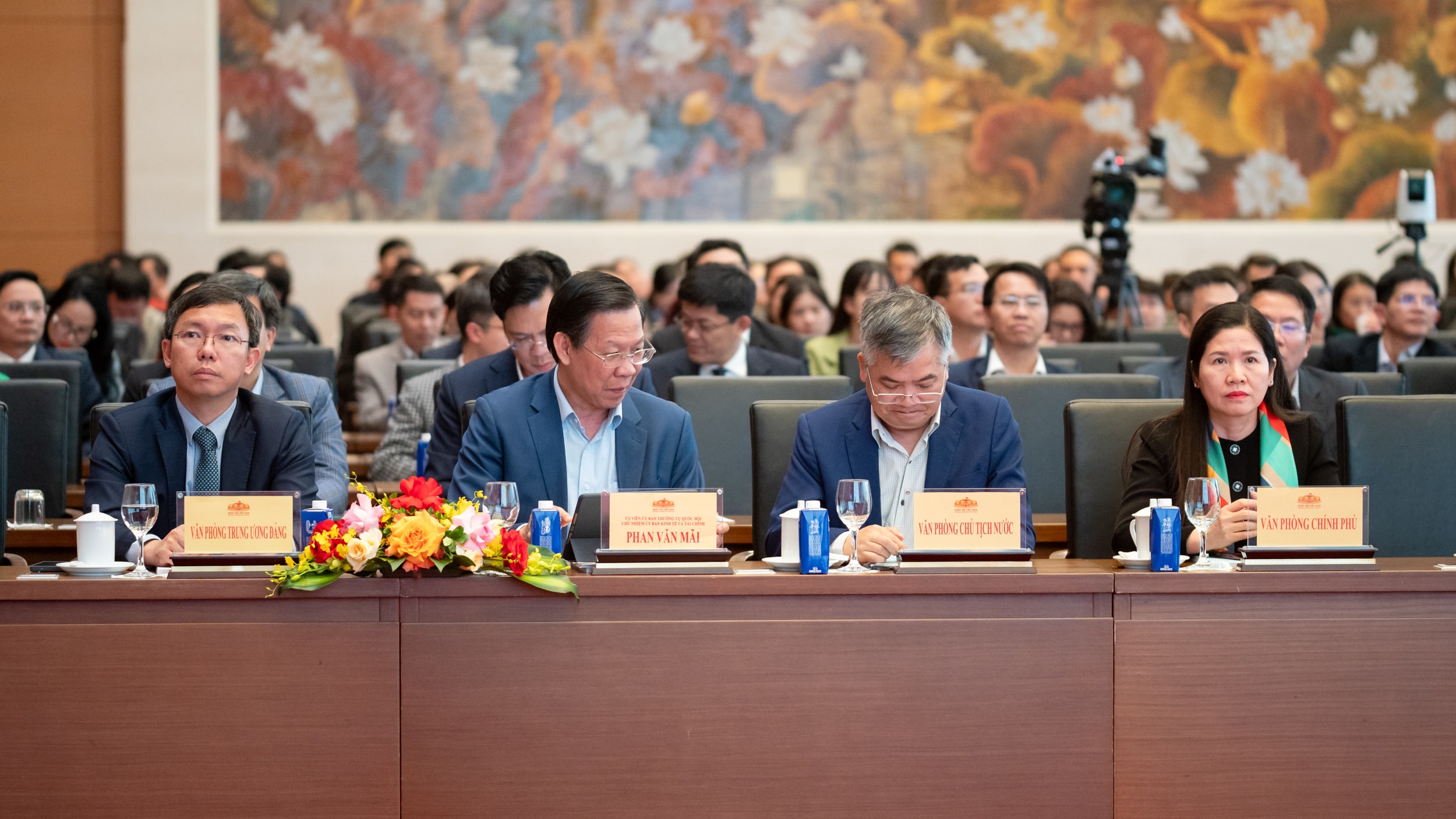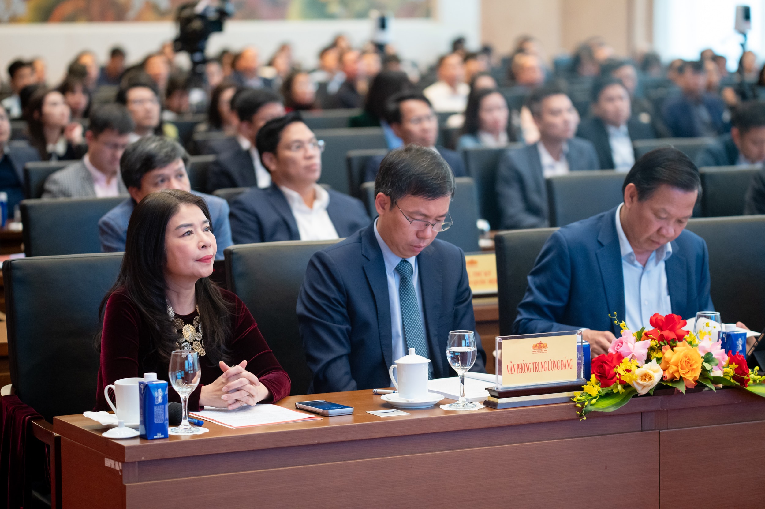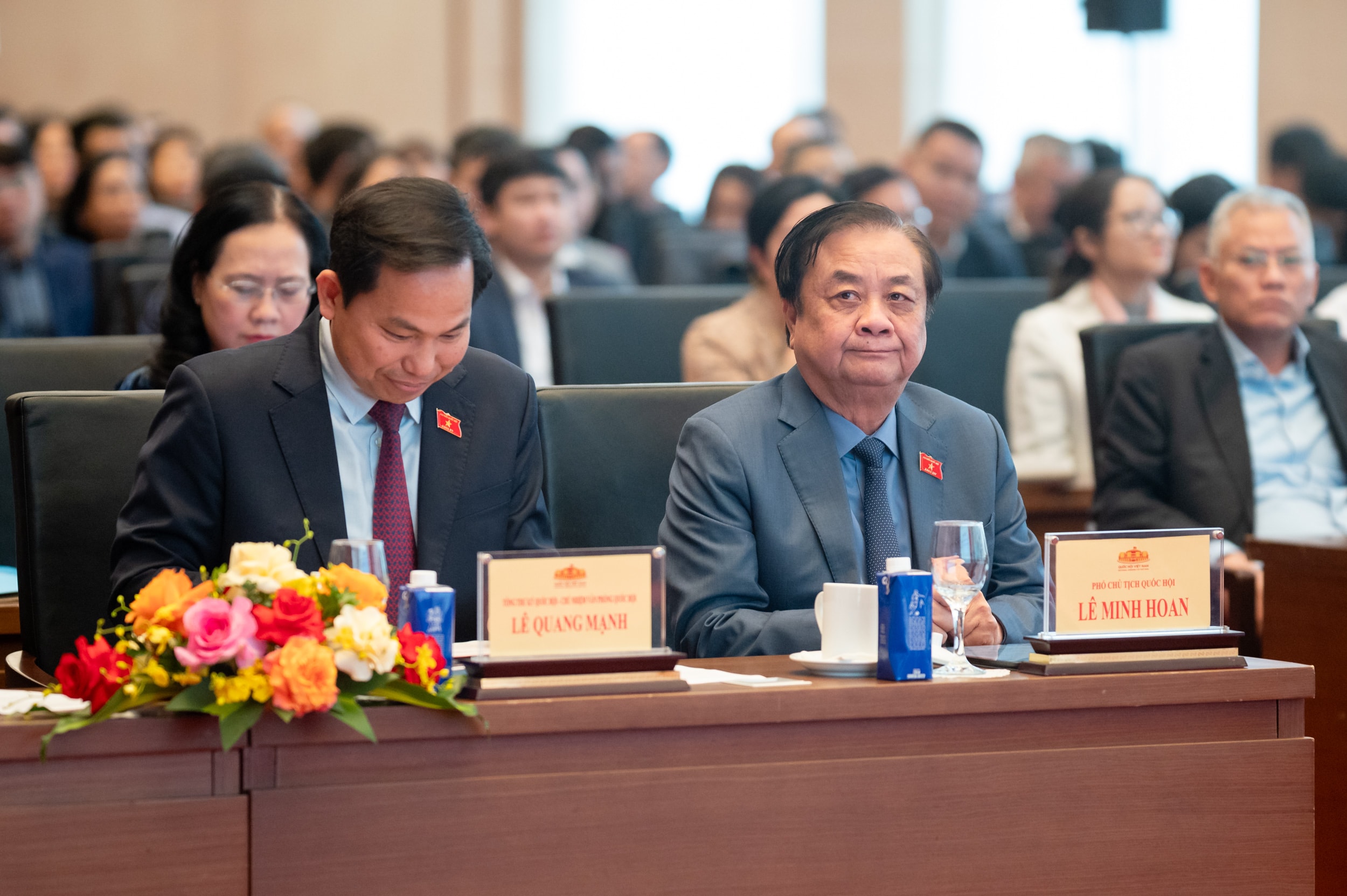 Phó Chủ tịch Quốc hội Lê Minh Hoan; Bí thư Đảng ủy Văn phòng Quốc hội, Tổng Thư ký Quốc hội, Chủ nhiệm Văn phòng Quốc hội Lê Quang Mạnh và các đại biểu dự hội nghị. Ảnh: Phạm Thắng