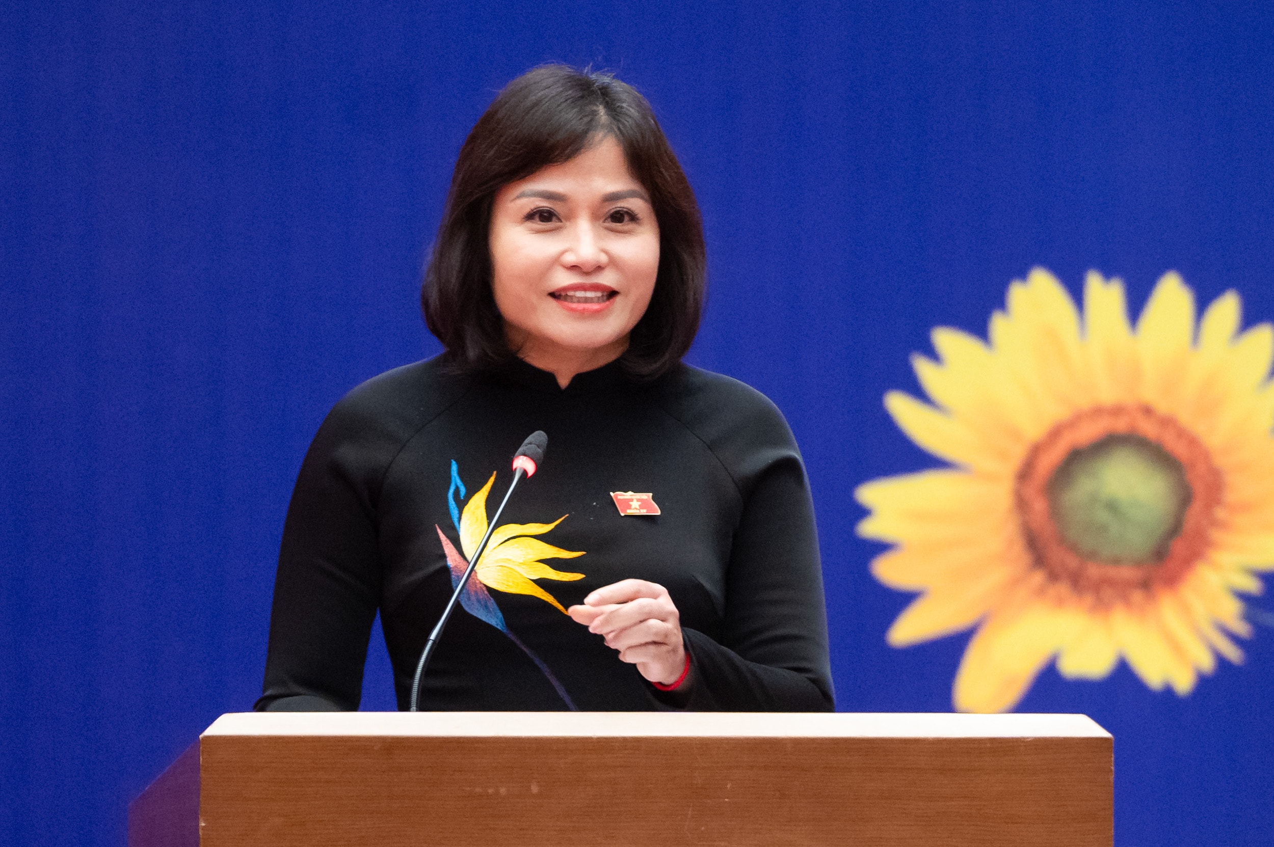 Ủy viên là đại biểu Quốc hội hoạt động chuyên trách tại Ủy ban Quốc phòng, An ninh và Đối ngoại Thái Quỳnh Mai Dung phát biểu