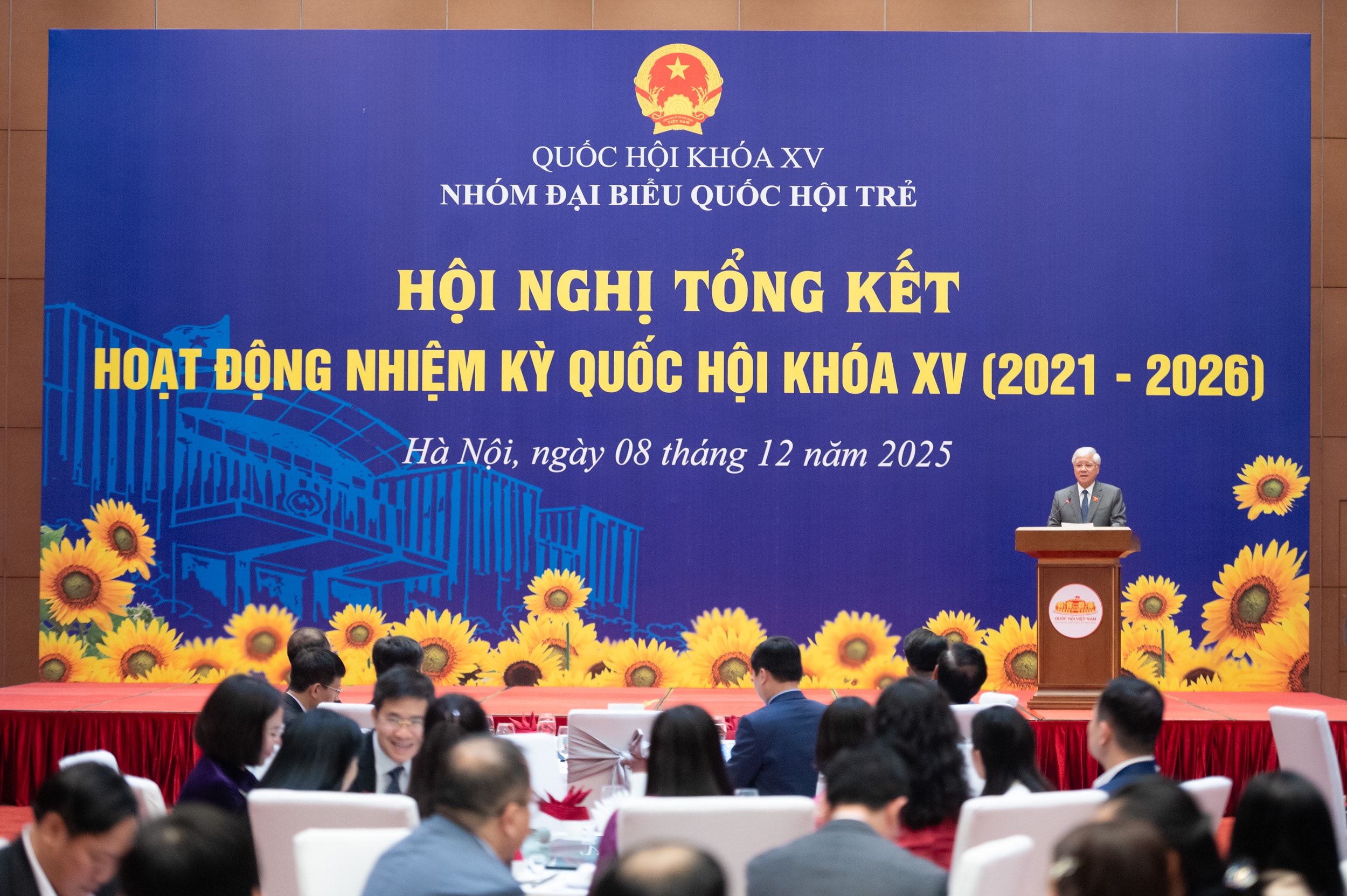 Thay mặt Ủy ban Thường vụ Quốc hội, Phó Chủ tịch Thường trực Quốc hội Đỗ Văn Chiến ghi nhận và trân trọng cảm ơn trí tuệ, sức trẻ, khát khao cống hiến của Nhóm ĐBQH trẻ vào thành công của nhiệm kỳ Quốc hội khóa XV: Bản lĩnh, đổi mới, dân chủ, chuyên nghiệp, để lại nhiều ấn tượng sâu sắc.