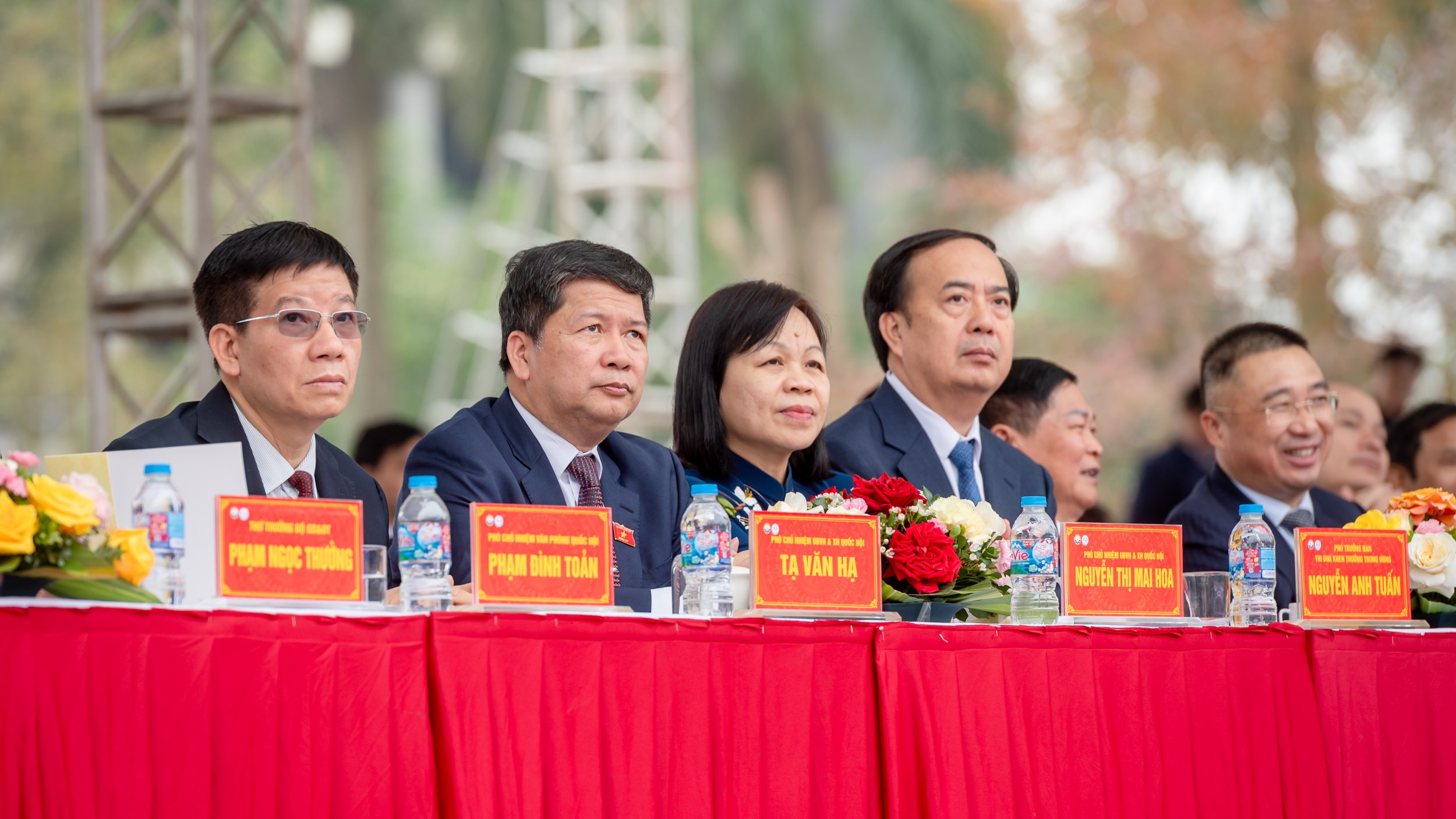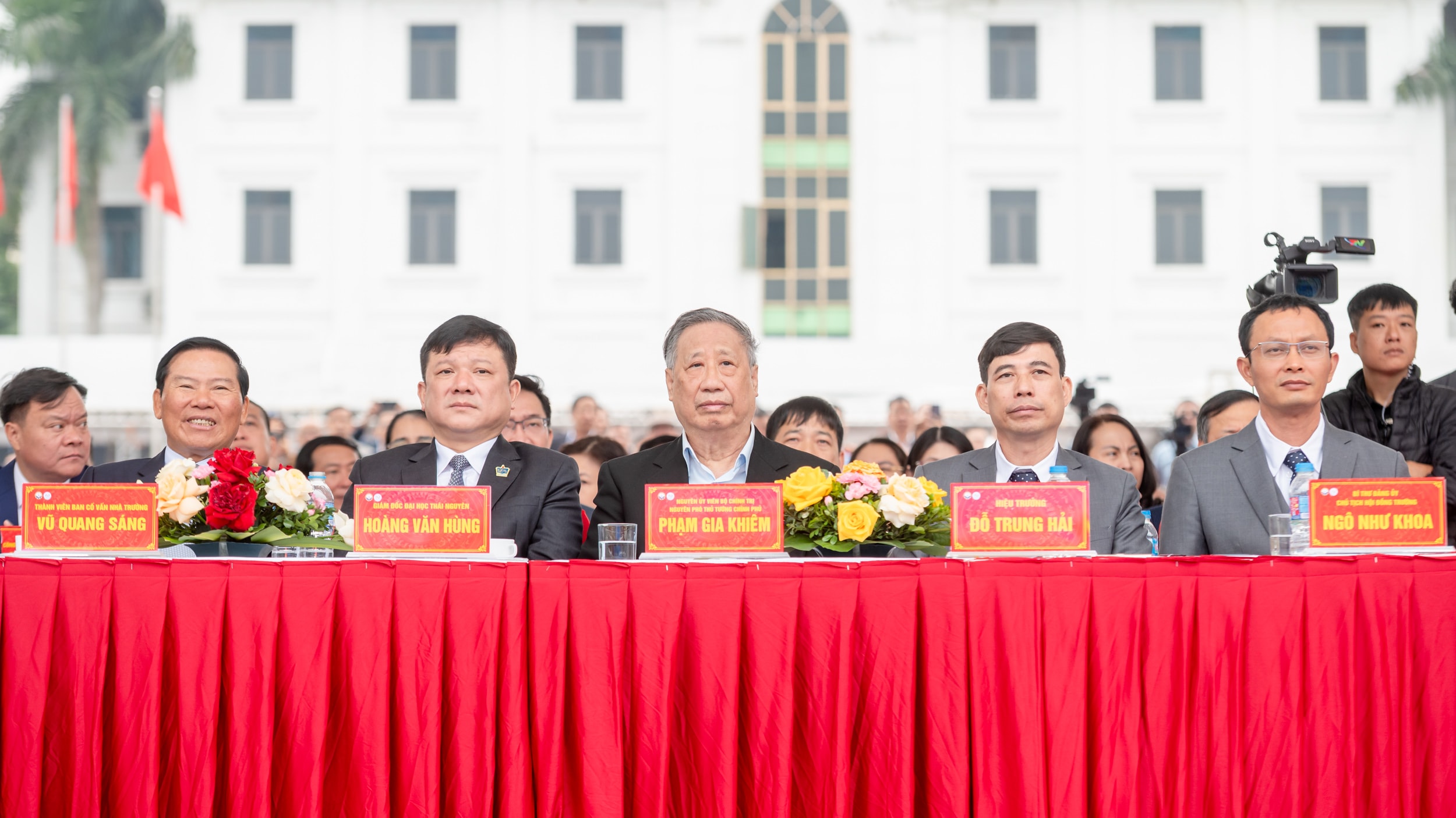 Tham dự có: nguyên Ủy viên Bộ Chính trị, nguyên Phó Thủ tướng Chính phủ Phạm Gia Khiêm; nguyên Ủy viên Trung ương Đảng, nguyên Bí thư Tỉnh ủy Thái Nguyên Phạm Xuân Đương; Phó Chủ nhiệm Ủy ban Văn hóa và Xã hội Tạ Văn Hạ; Phó Chủ nhiệm Ủy ban Văn hóa và Xã hội Nguyễn Thị Mai Hoa; Thứ trưởng Bộ Giáo dục và Đào tạo Phạm Ngọc Thưởng; Phó Chủ nhiệm Văn phòng Quốc hội Phạm Đình Toản; Phó Trưởng ban Thi đua khen thưởng Trung ương Nguyễn Anh Tuấn.