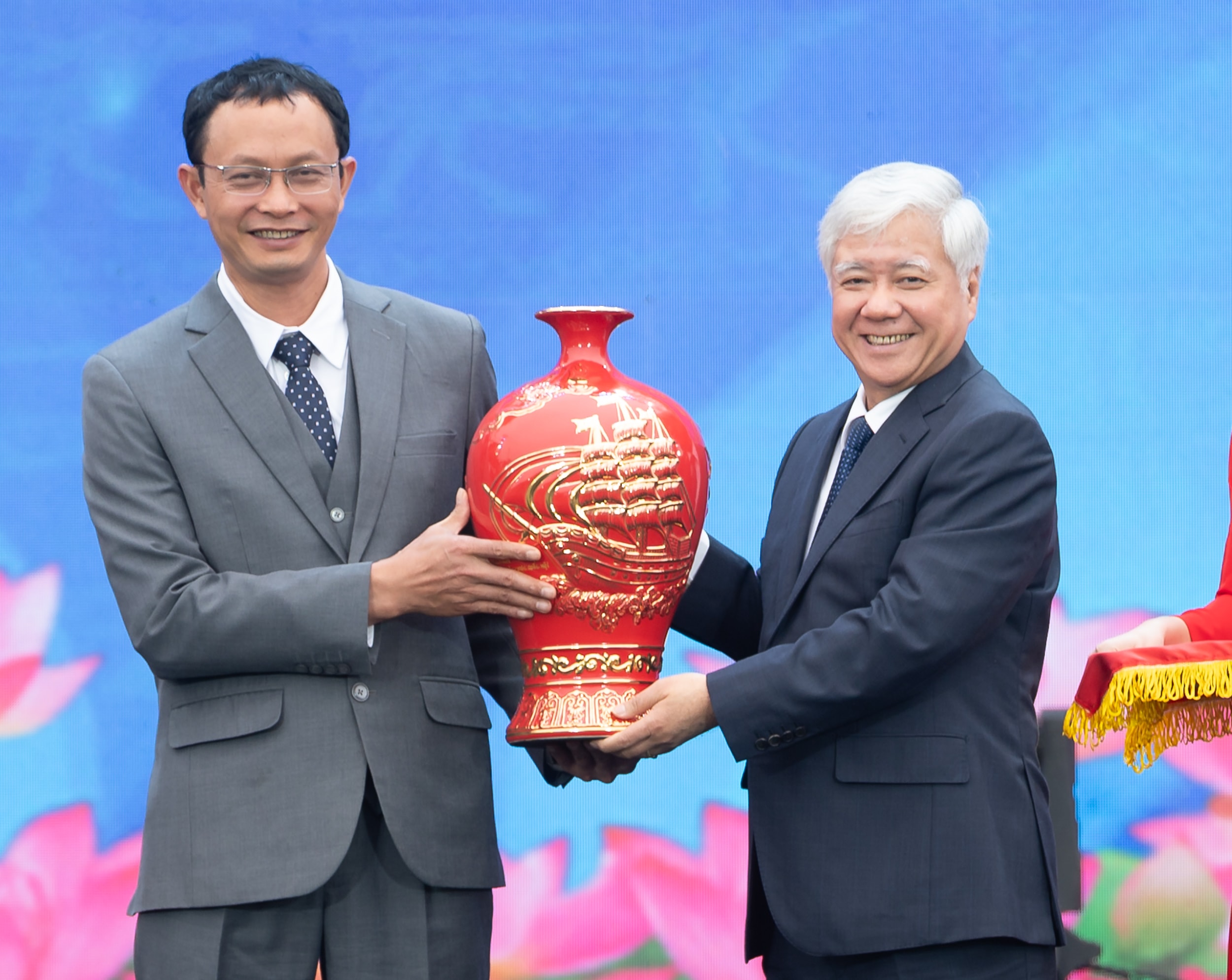 Phó Chủ tịch Thường trực Quốc hội Đỗ Văn Chiến tặng quà chúc mừng Nhà trường