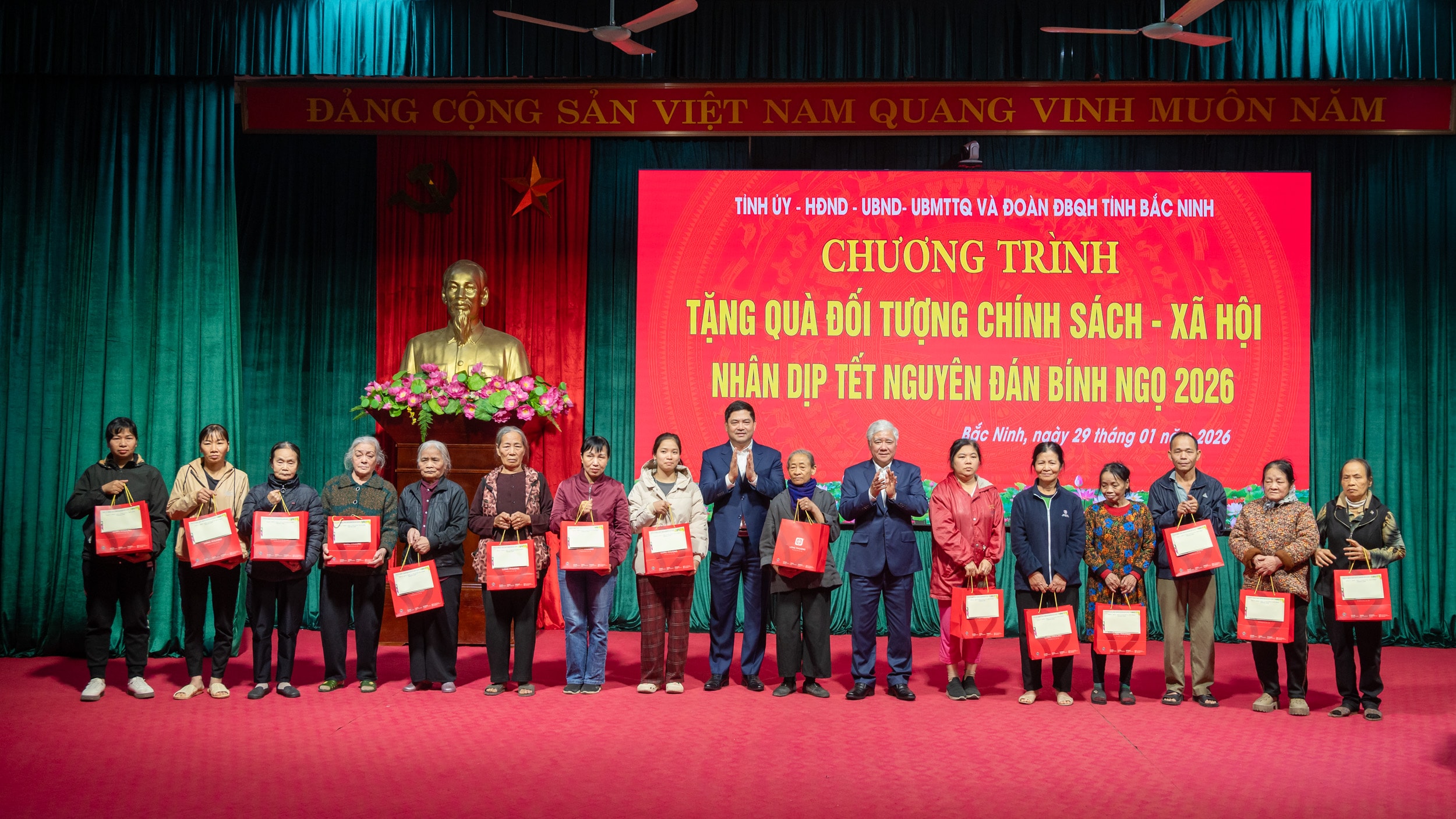 Ghi nhận tỉnh Bắc Ninh đang thực hiện rất tốt Chỉ thị 55-CT/TW của Ban Bí thư về việc tổ chức Tết Bính Ngọ năm 2026, Phó Chủ tịch Thường trực Quốc hội mong muốn, cấp ủy, chính quyền, MTTQ các cấp cùng các tổ chức đoàn thể tiếp tục quan tâm, rà soát đầy đủ các đối tượng chính sách, kịp thời hỗ trợ, không để ai bị bỏ lại phía sau, nhất là trong dịp Tết đến, Xuân về.