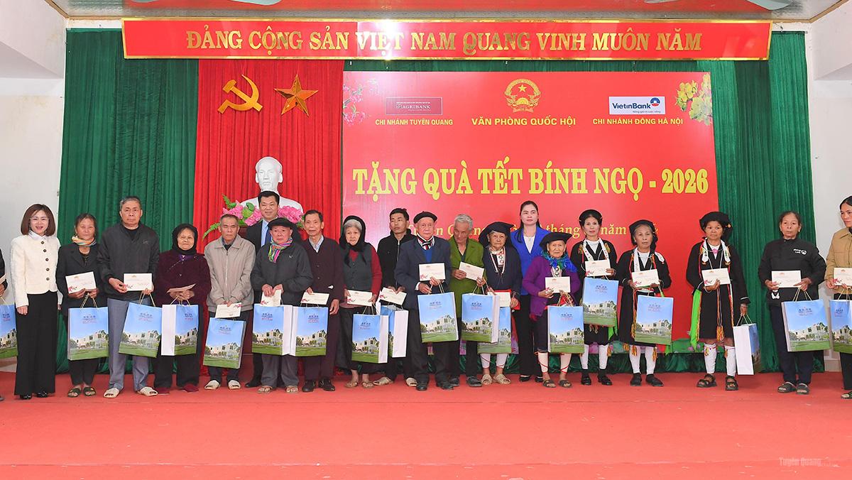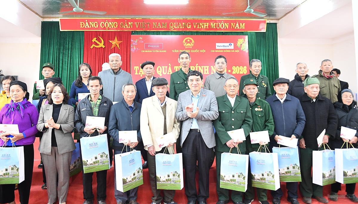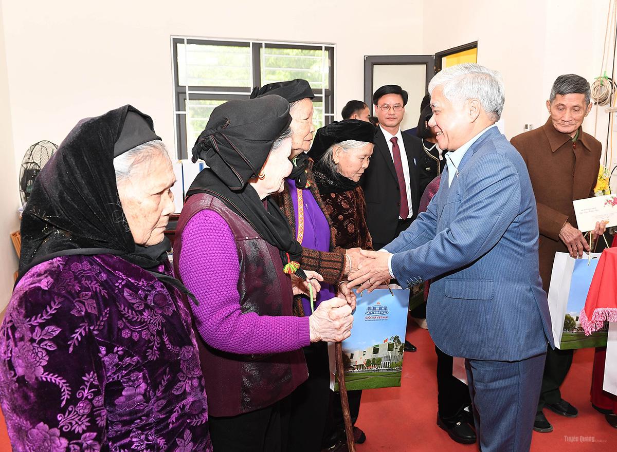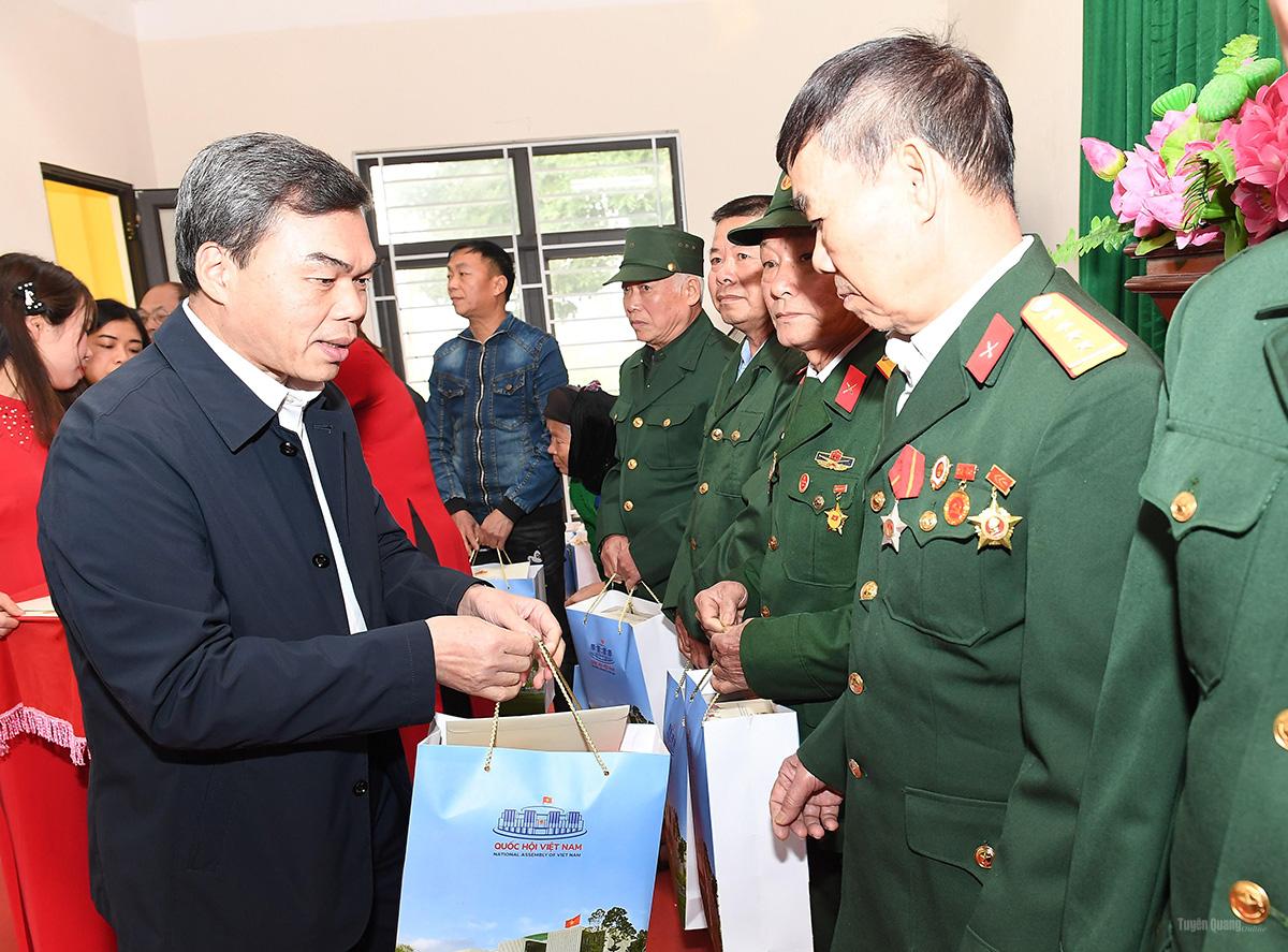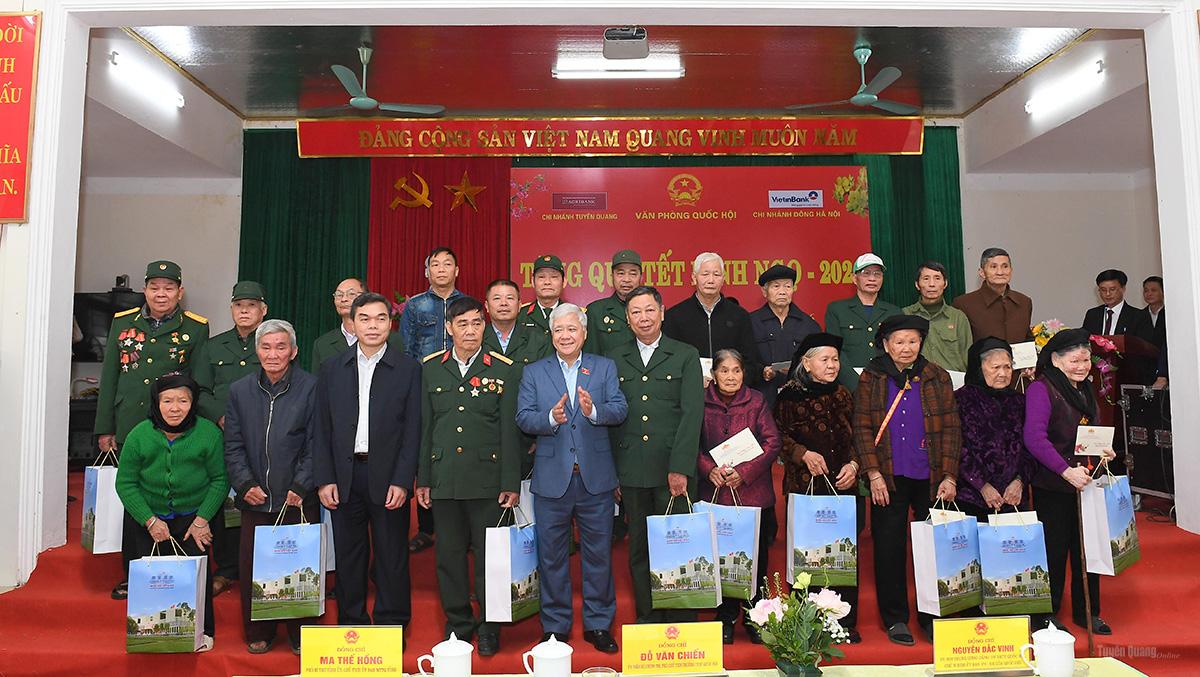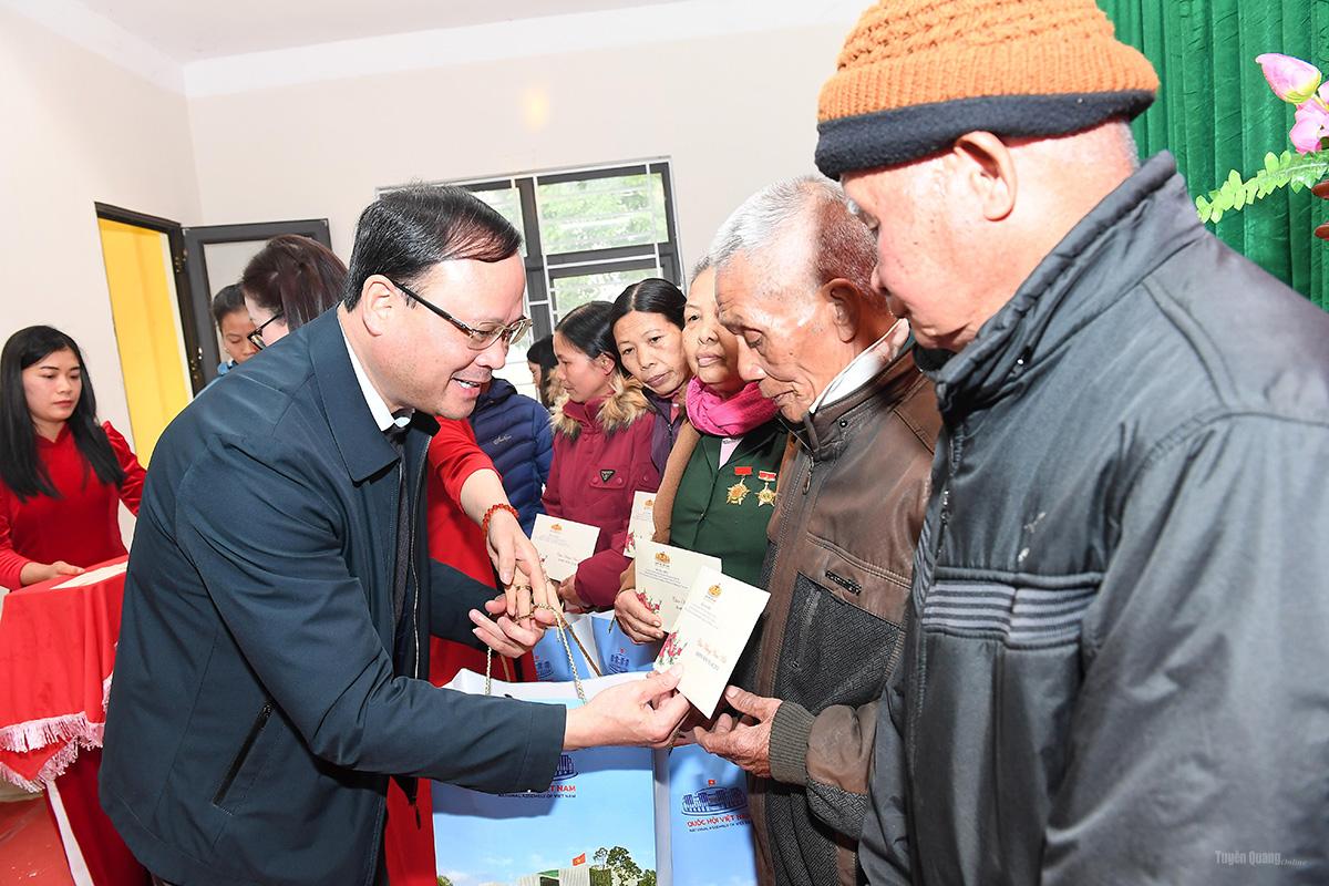 Đoàn công tác của Phó Chủ tịch Thường trực Quốc hộiđã trao 1.850 suất quà, mỗi suất trị giá 1,3 triệu đồng tặng các gia đình chính sách, người cao tuổi, người có công với cách mạng có hoàn cảnh khó khăn trên địa bàn tỉnh. Trong đó trao tặng 850 suất cho các đối tượng gia đình chính sách, người có công, người cao tuổi từ 80 tuổi trở lên và gia đình có hoàn cảnh khó khăn xã Sơn Thủy. 1.000 suất chuyển cho Ủy ban MTTQ tỉnh, Đoàn đại biểu Quốc hội tỉnh để trao tặng quà cho các hộ gia đình chính sách, người có công với cách mạng, người có hoàn cảnh khó khăn trên địa bàn tỉnh Tuyên Quang.