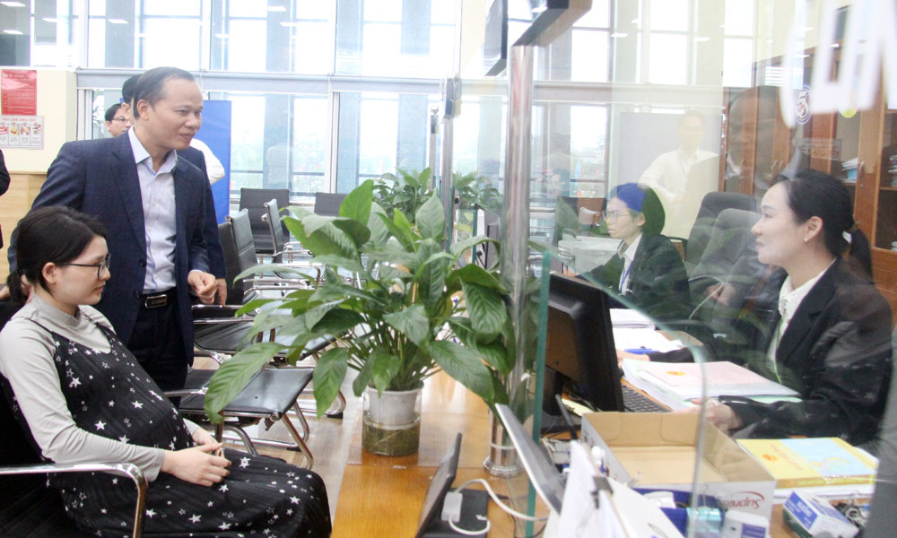 Đồng chí Mai Sơn nắm bắt tình hình tiếp nhận, giải quyết thủ tục hành chính cho công dân trong ngày làm việc đầu tiên sau nghỉ Tết nguyên đán Bính Ngọ.