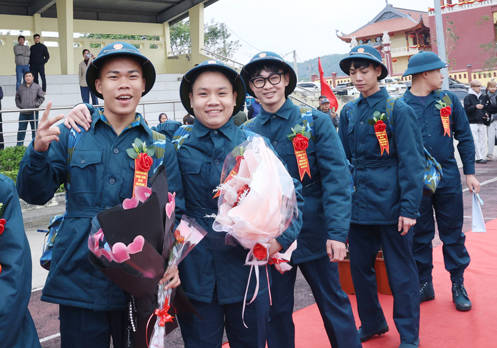 Tân binh phấn khởi lên đường nhập ngũ.