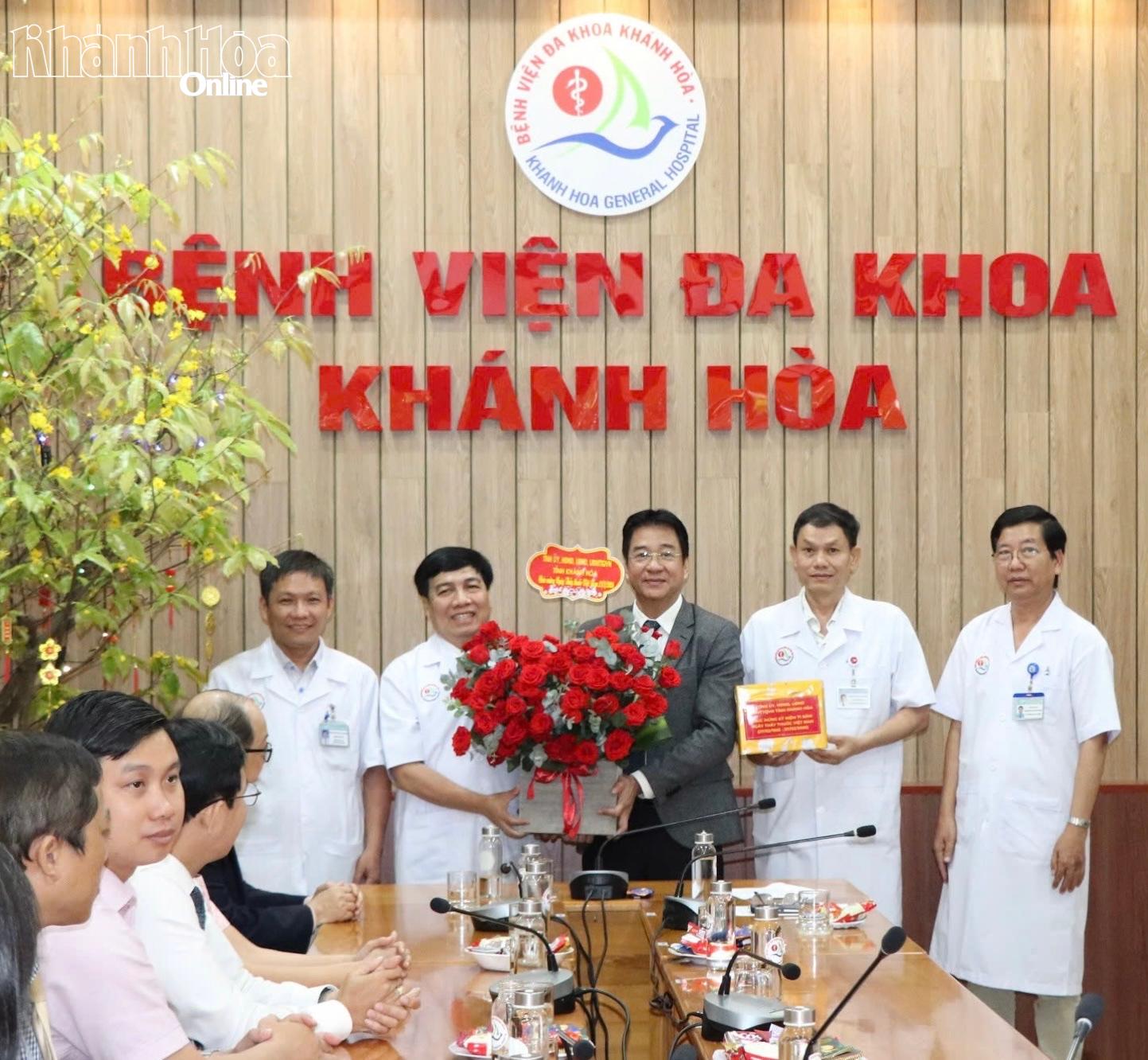 Đồng chí Nguyễn Long Biên thăm, tặng hoa chúc mừng Bệnh viện Đa khoa Khánh Hòa.
