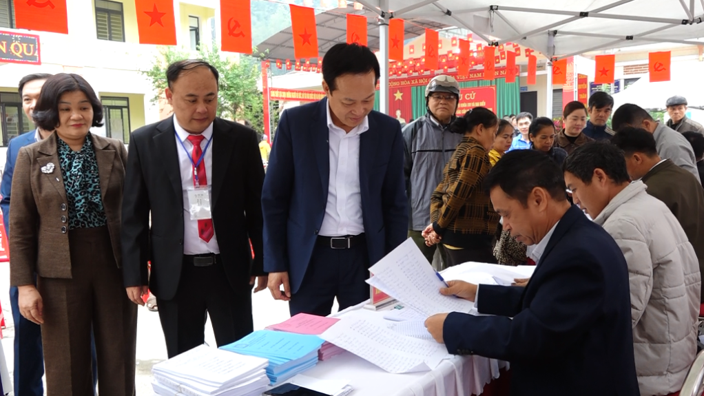 Phó Chủ tịch Thường trực UBND tỉnh Vũ Đình Quang kiểm tra công tác bầu cử tại khu vực bỏ phiếu số 01 xã Tổng Cọt.