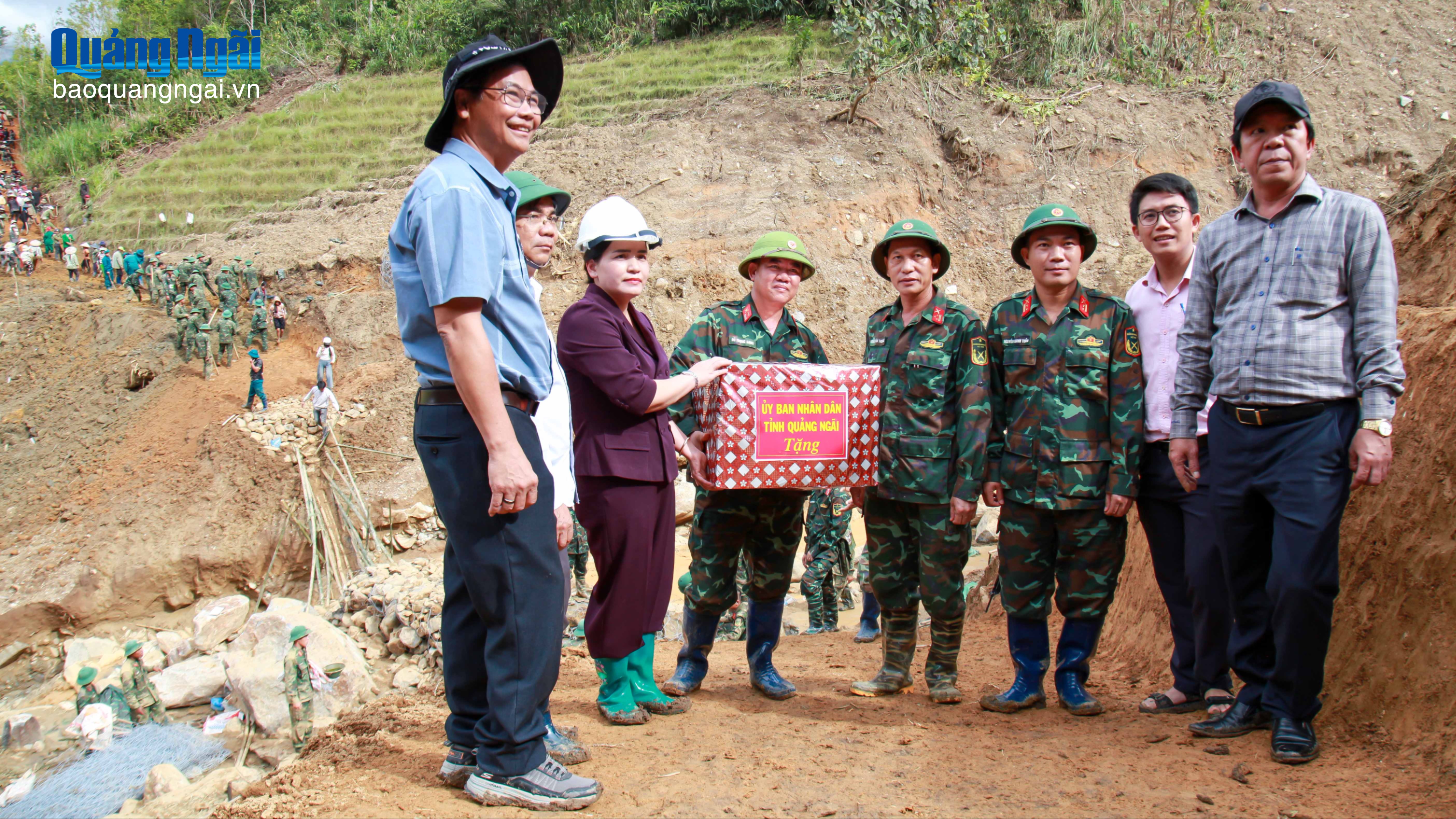 Bên cạnh đó, thăm, tặng quà và ghi nhận nỗ lực của cán bộ, chiến sĩ Sư đoàn 10 (Quân đoàn 34) đang ngày đêm tham gia mở đường, giúp người dân sớm ổn định cuộc sống.