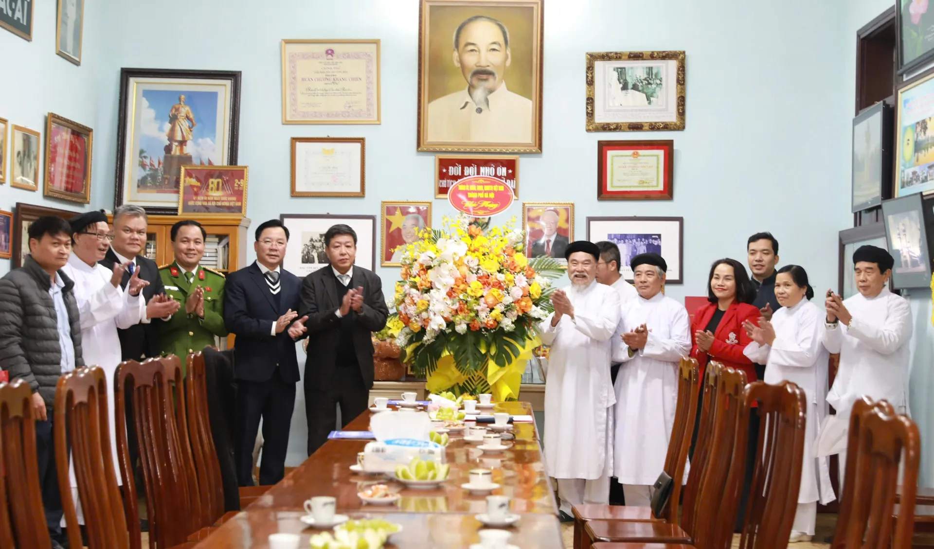 Tại Thánh thất Cao Đài Thủ đô (số 48 Hòa Mã), thay mặt lãnh đạo thành phố, Phó Chủ tịch Thường trực UBND TP Hà Nội Dương Đức Tuấn chúc mừng năm mới Giáo sư Thượng Mai Thanh - Trưởng ban Cai quản Thánh thất Cao Đài Thủ đô cùng các vị chức sắc, chức việc, đạo hữu và toàn thể tín đồ Cao Đài Thủ đô lời thăm hỏi ân cần, lời chúc năm mới mạnh khỏe, an lạc, đạo tâm viên mãn, gia đình hạnh phúc, quốc thái dân an.
