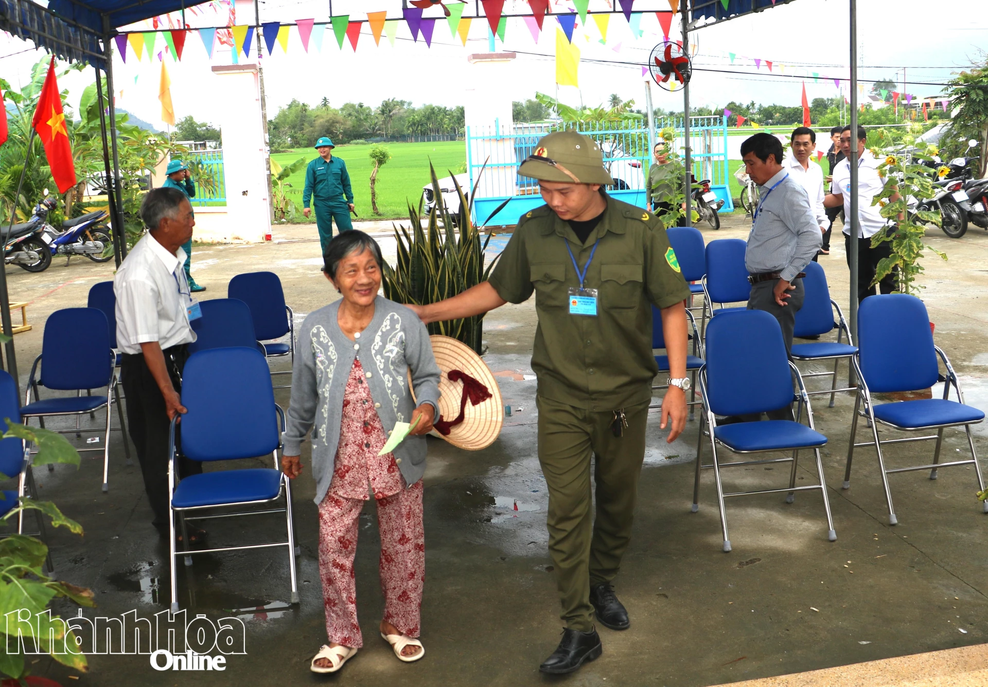 Các lực lượng hỗ trợ người già vào bỏ phiếu tại Khu vực bỏ phiếu tổ 13.