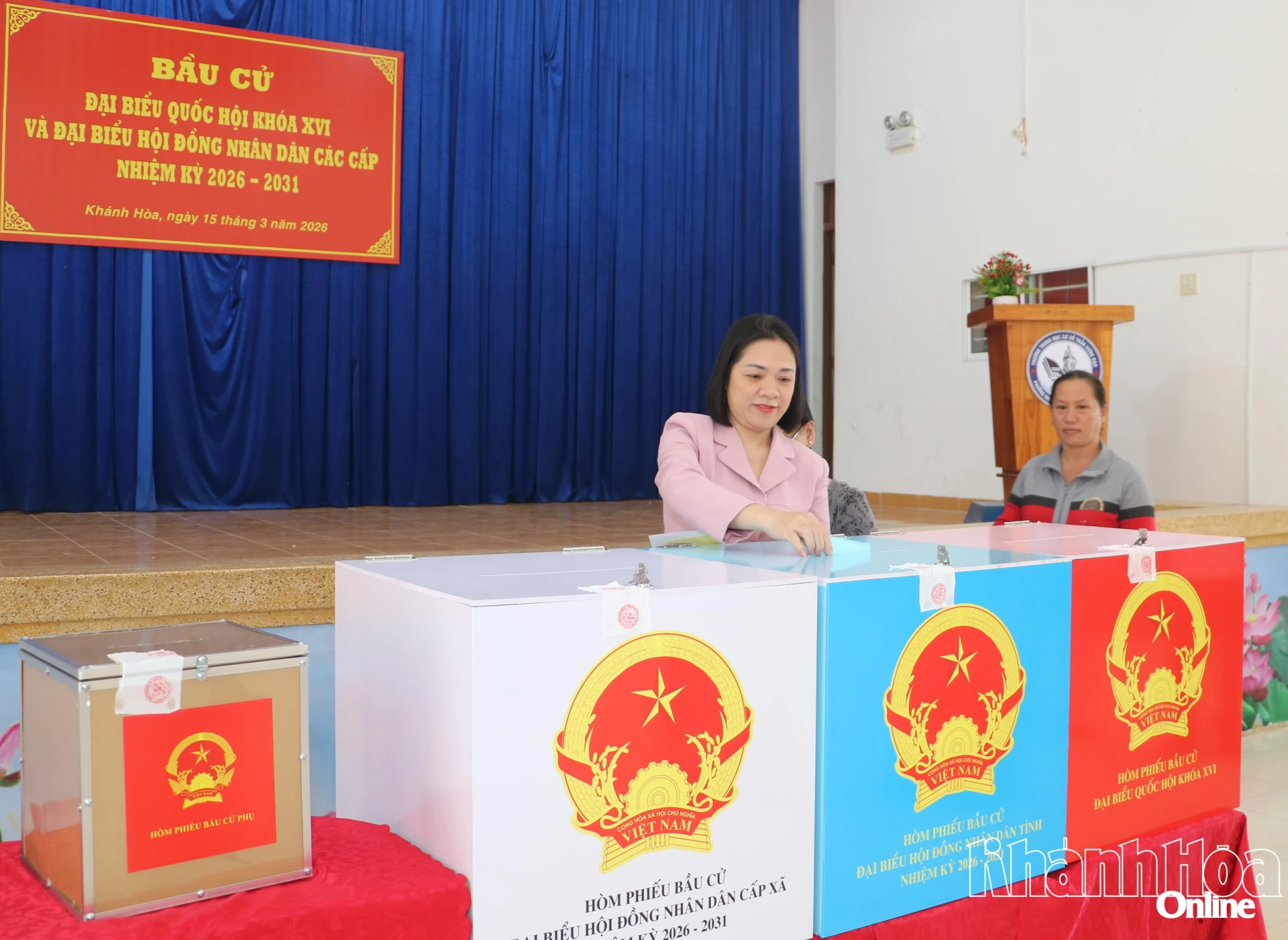 Đồng chí Trần Thu Mai bỏ phiếu tại Khu vực bỏ phiếu số 3, phường Nam Nha Trang.