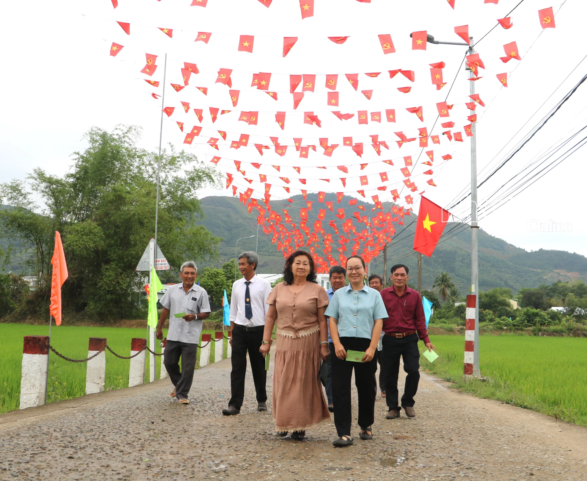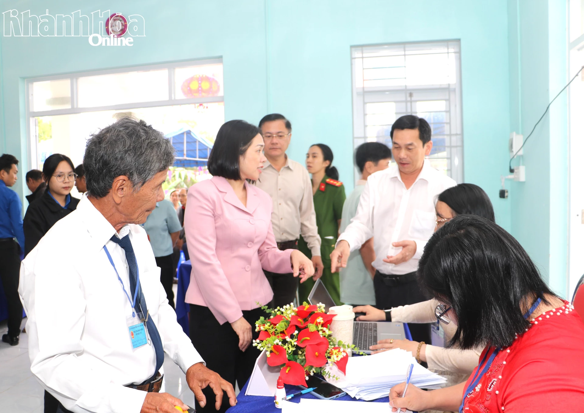 Đồng chí Trần Thu Mai nắm tình hình tại Khu vực bỏ phiếu số 14, xã Suối Hiệp.