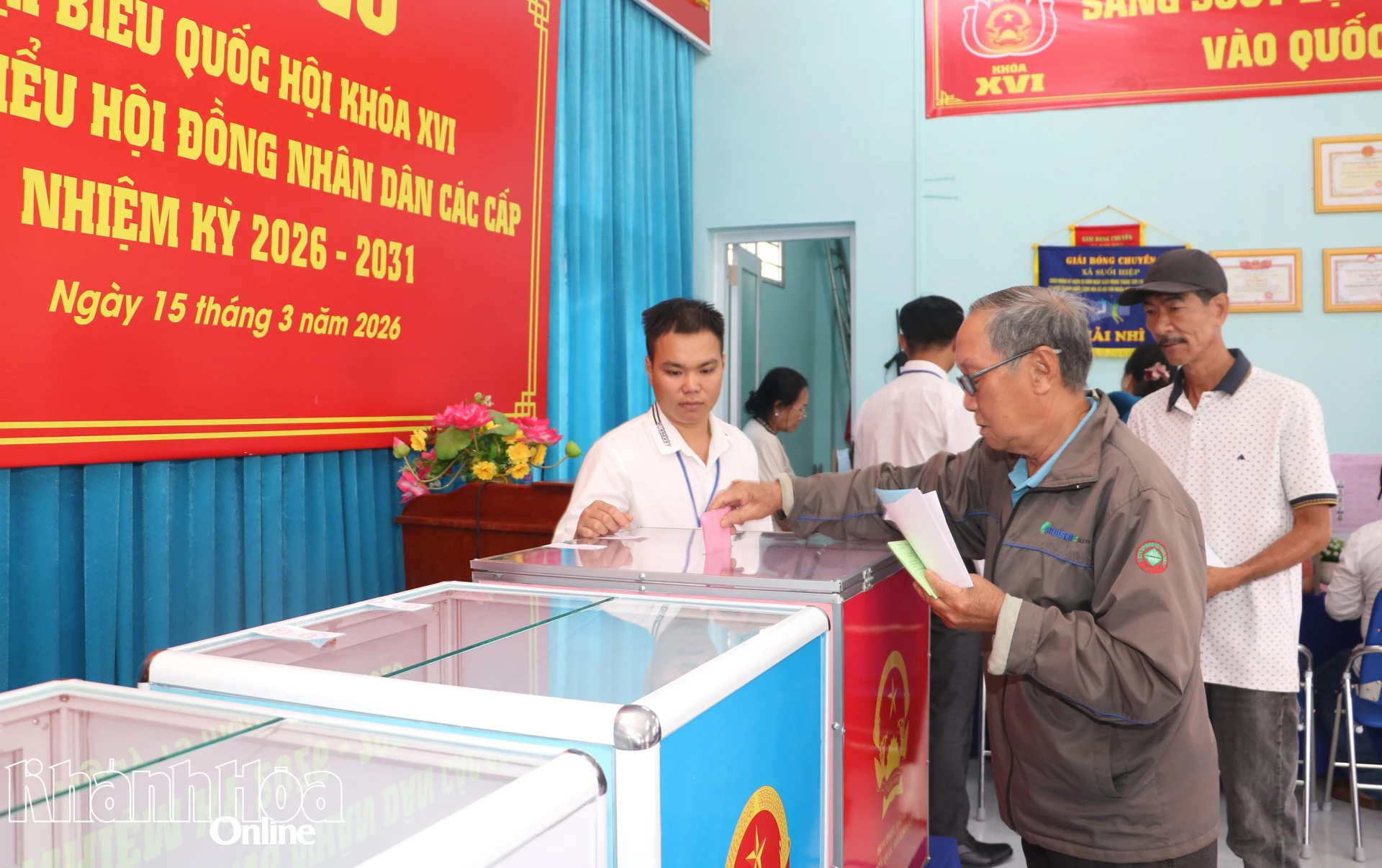 Sáng 15-3, đồng chí Trần Thu Mai - Ủy viên Ban Thường vụ Tỉnh ủy, Phó Chủ tịch Thường trực Ủy ban MTTQ Việt Nam tỉnh, Thành viên Ban Chỉ đạo Bầu cử tỉnh, Ủy viên Ủy ban Bầu cử tỉnh Khánh Hòa tham gia bỏ phiếu bầu cử tại Khu vực bỏ phiếu số 3, Trường THCS Trần Hưng Đạo, phường Nam Nha Trang và kiểm tra công tác bầu cử tại Khu vực bỏ phiếu tổ 13, tổ 14, xã Suối Hiệp.