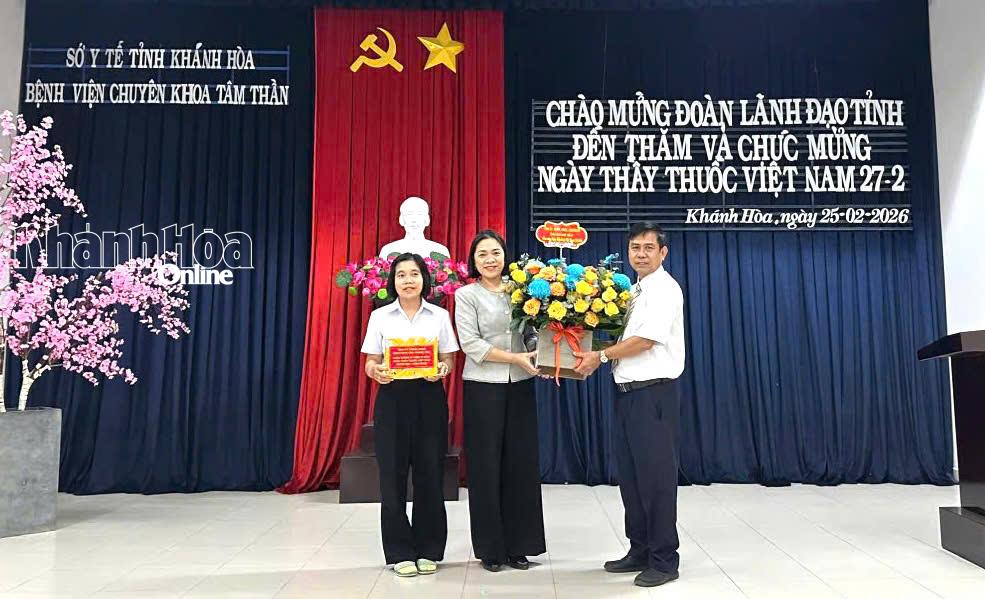 Chiều 25-2, đồng chí Trần Thu Mai - Ủy viên Ban Thường vụ Tỉnh ủy, Phó Chủ tịch Thường trực Ủy ban MTTQ Việt Nam tỉnh Khánh Hòa cùng đoàn công tác đến thăm, chúc mừng tập thể cán bộ, y, bác sĩ, nhân viên Bệnh viện Chuyên khoa Tâm thần Khánh Hòa; Trung tâm Y tế khu vực Khánh Vĩnh; Trung tâm Y tế khu vực Cam Lâm nhân kỷ niệm 71 năm Ngày Thầy thuốc Việt Nam (27-2-1955 - 27-2-2026).