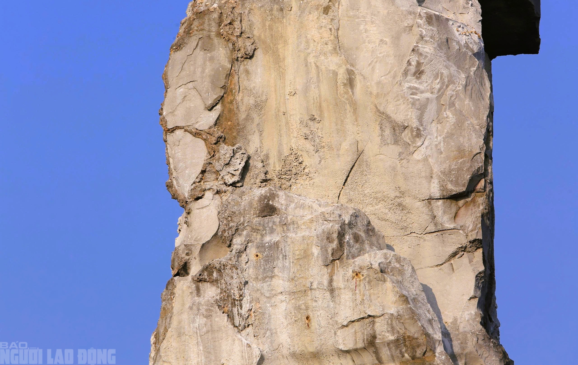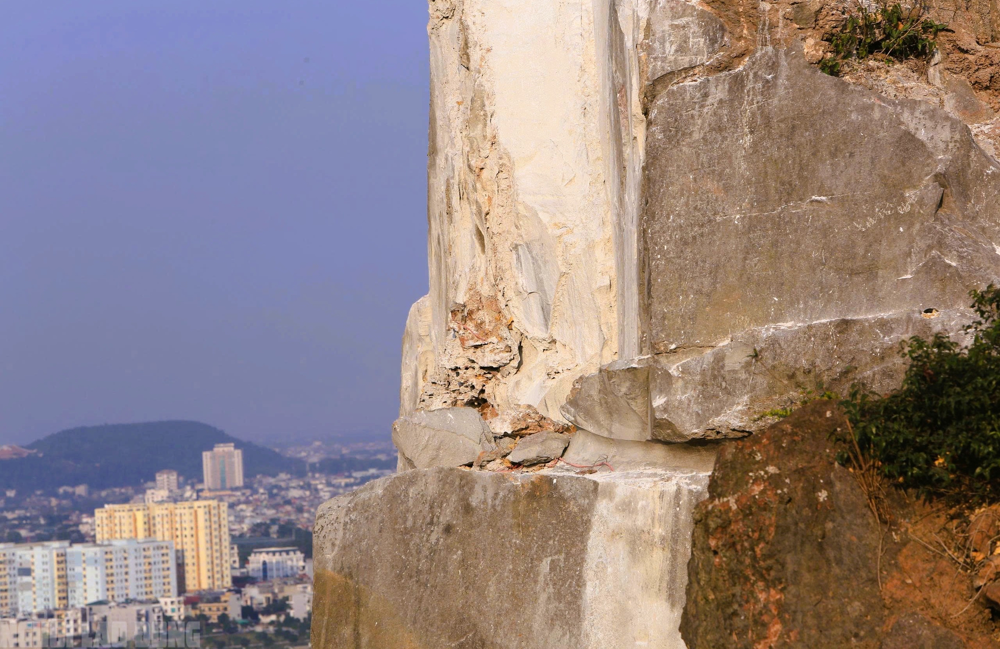Cận cảnh các đoạn nứt vỡ của Hòn Vọng Phu sau khi được gia cố
