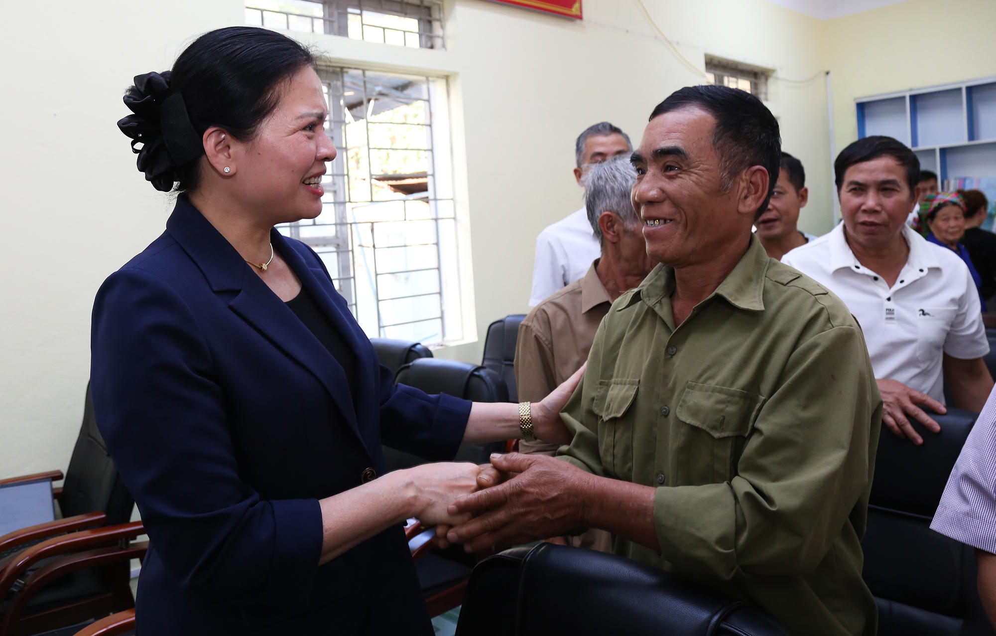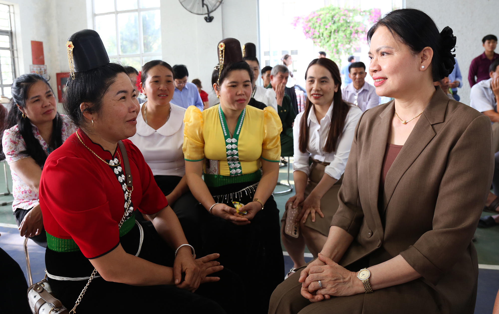 Tại xã Mường Than, trong phút nghỉ giữa hội nghị, bà Hà Thị Nga dành thời gian trò chuyện thân tình với những phụ nữ dân tộc Thái. Giữa không khí gần gũi ấy là sự sẻ chia mộc mạc, ấm áp như tình người nơi bản làng vùng cao.