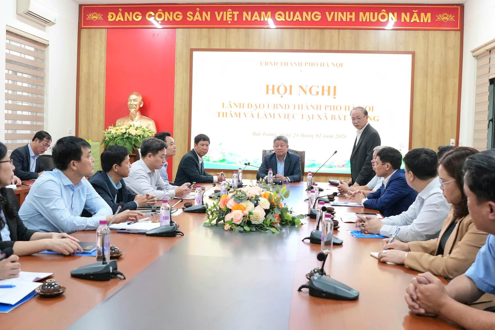 Quang cảnh buổi làm việc của lãnh đạo thành phố tại xã Bát Tràng. Ảnh: Vân Nga