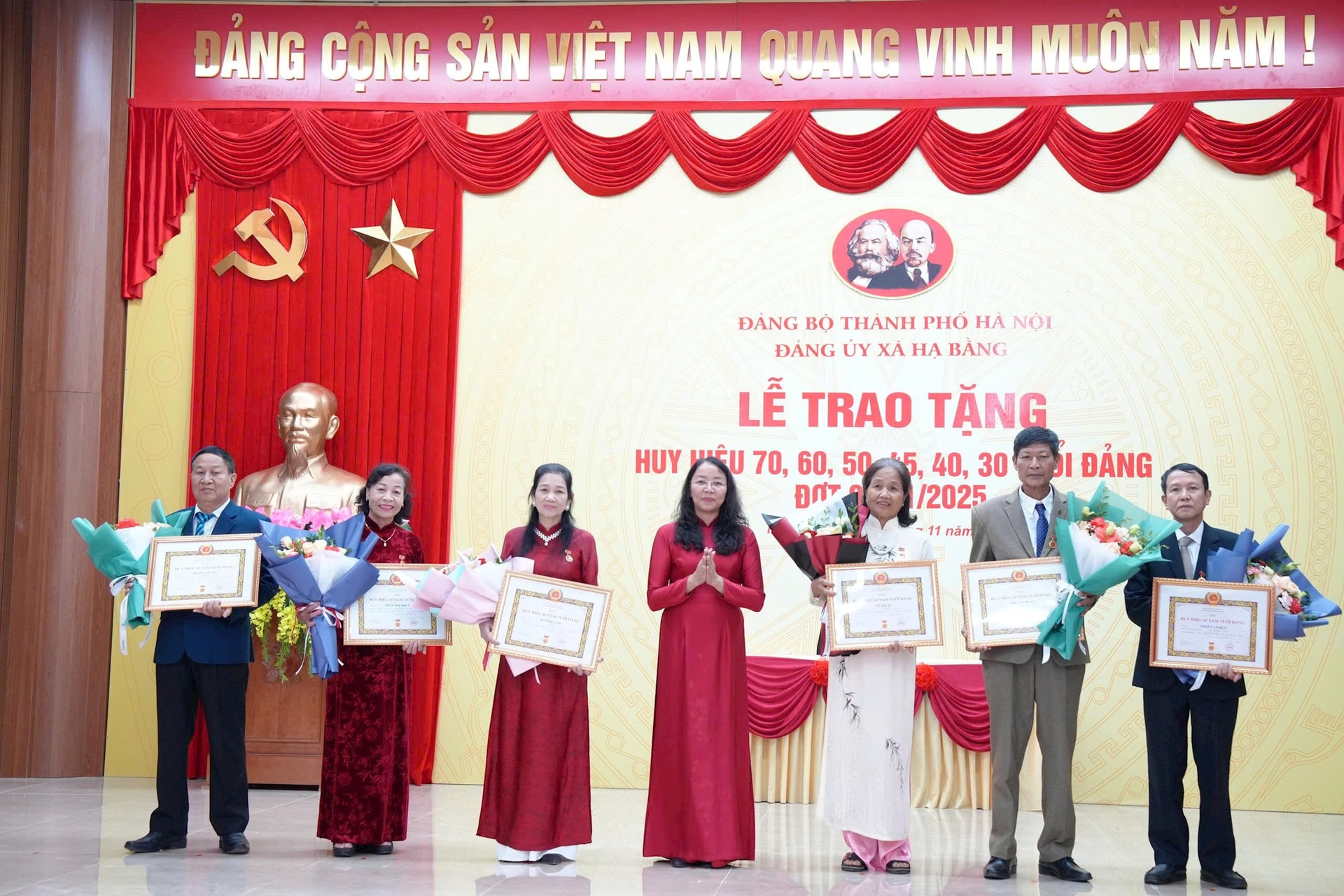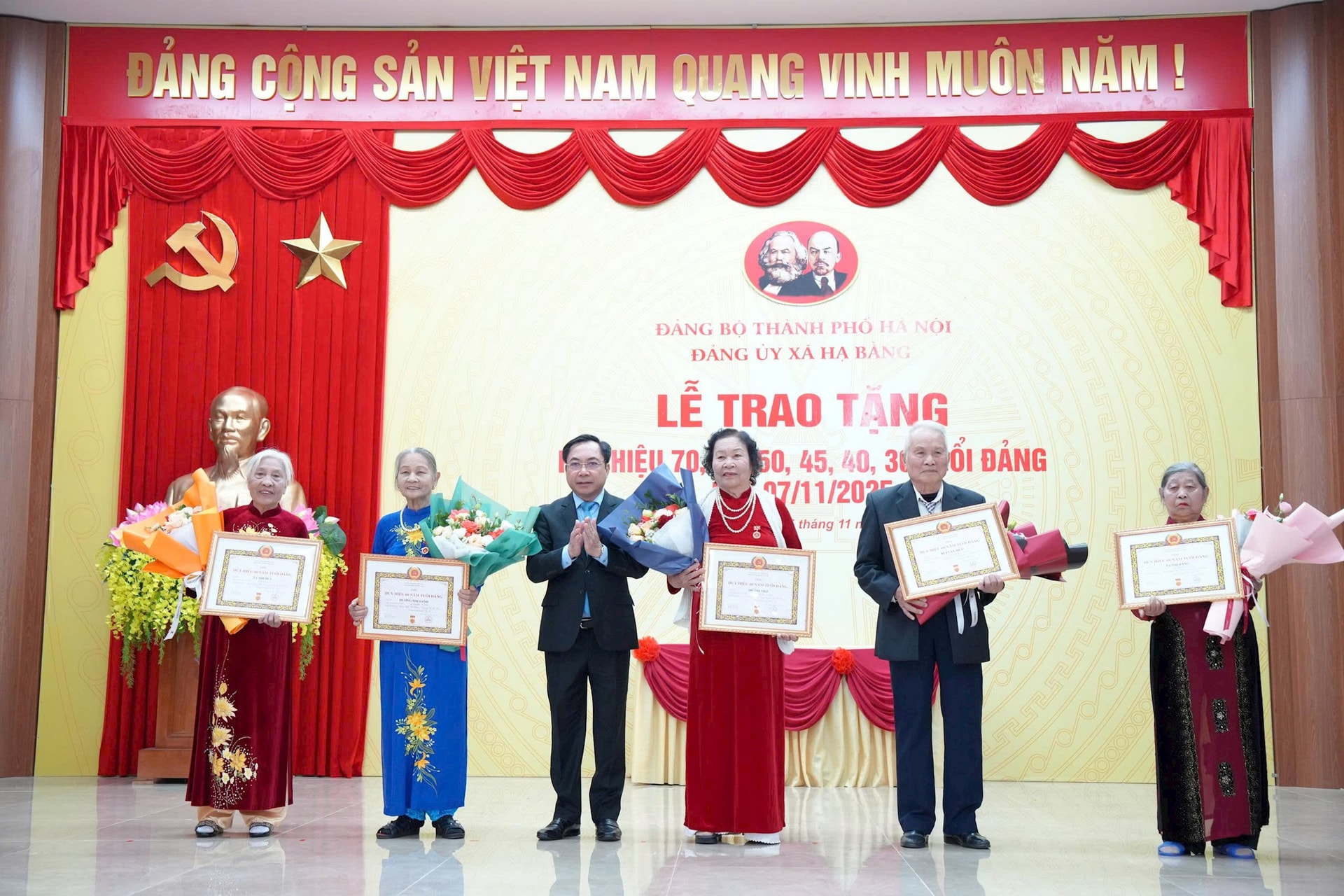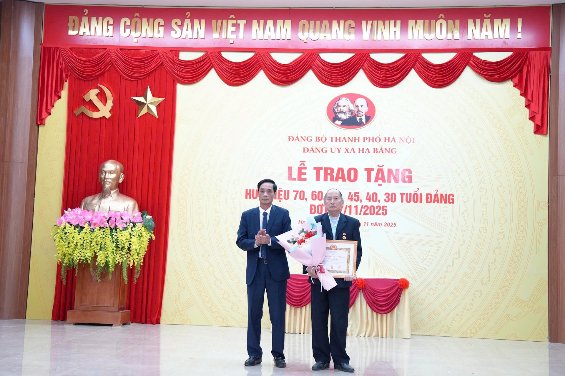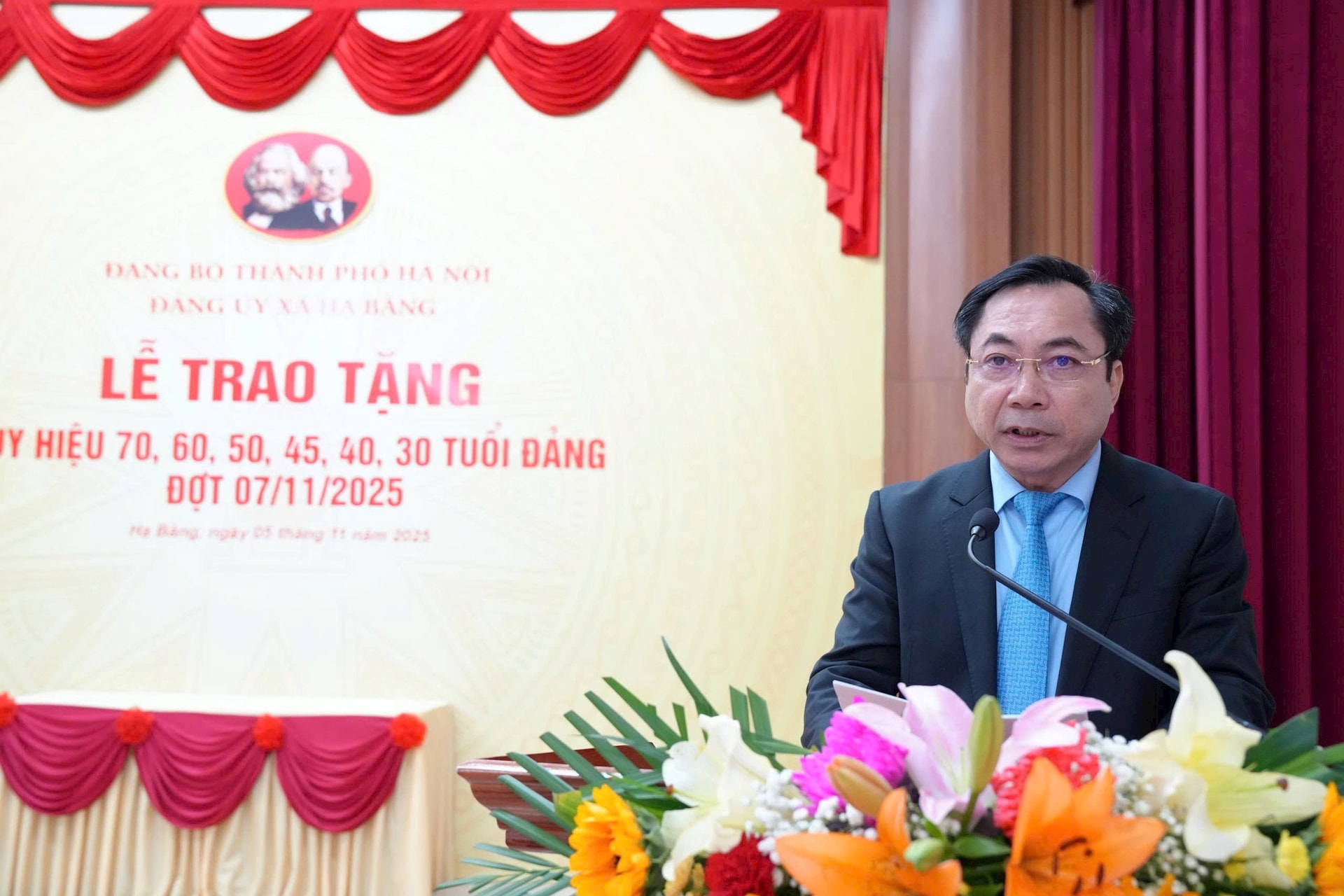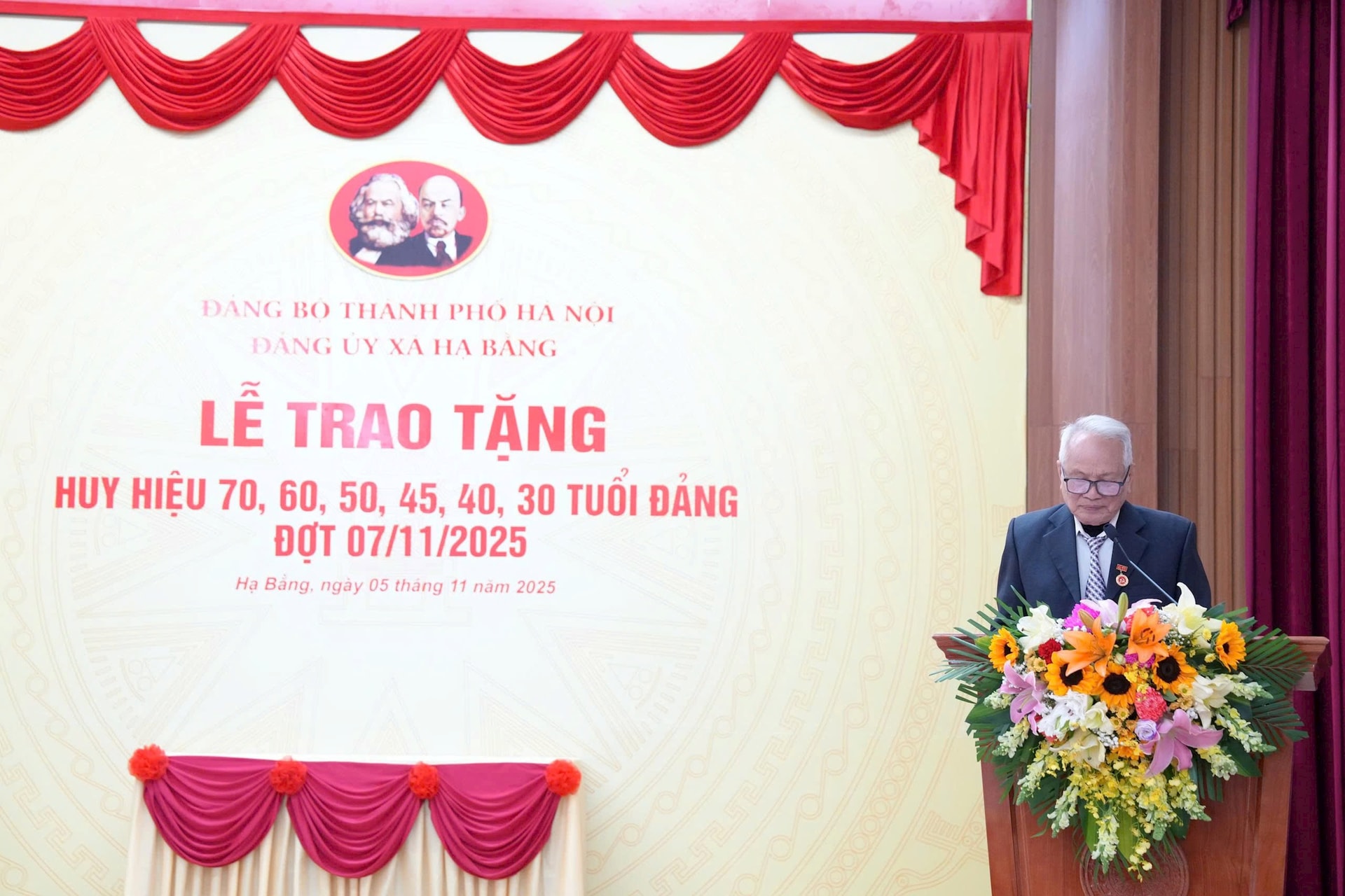Bí thư Đảng ủy xã Hạ Bằng cho biết, mỗi tấm Huy hiệu Đảng minh chứng sinh động, ghi nhận chặng đường rèn luyện, cống hiến không mệt mỏi của các đồng chí; là biểu tượng cao đẹp về phẩm chất, khí phách của người chiến sỹ cộng sản, dù ở cương vị nào, thời kỳ nào, các đồng chí luôn giữ trọn niềm tin với Đảng, nêu cao phẩm chất đạo đức cách mạng, là tấm gương sáng cho lớp lớp thế hệ cán bộ, đảng viên và nhân dân noi theo. Đây không chỉ là niềm vinh dự, tự hào của cá nhân các đồng chí mà là niềm vui chung, niềm tự hào của toàn Đảng bộ thành phố nói chung và xã Hạ Bằng nói riêng. Đến nay, nhiều đồng chí, dù tuổi cao song vẫn tích cực tham gia các hoạt động tại địa phương, gương mẫu đi đầu trong các lĩnh vực, góp phần hoàn thành thắng lợi nhiệm vụ của địa phương...