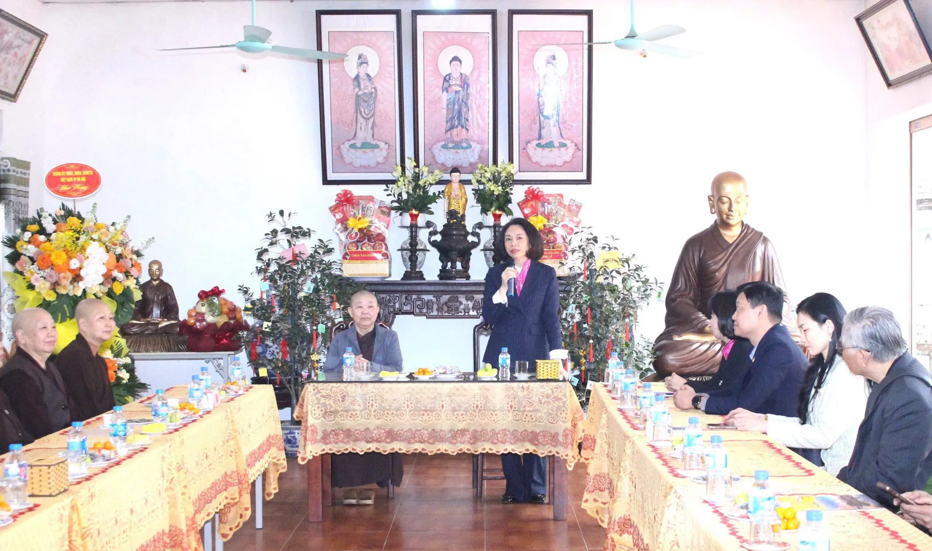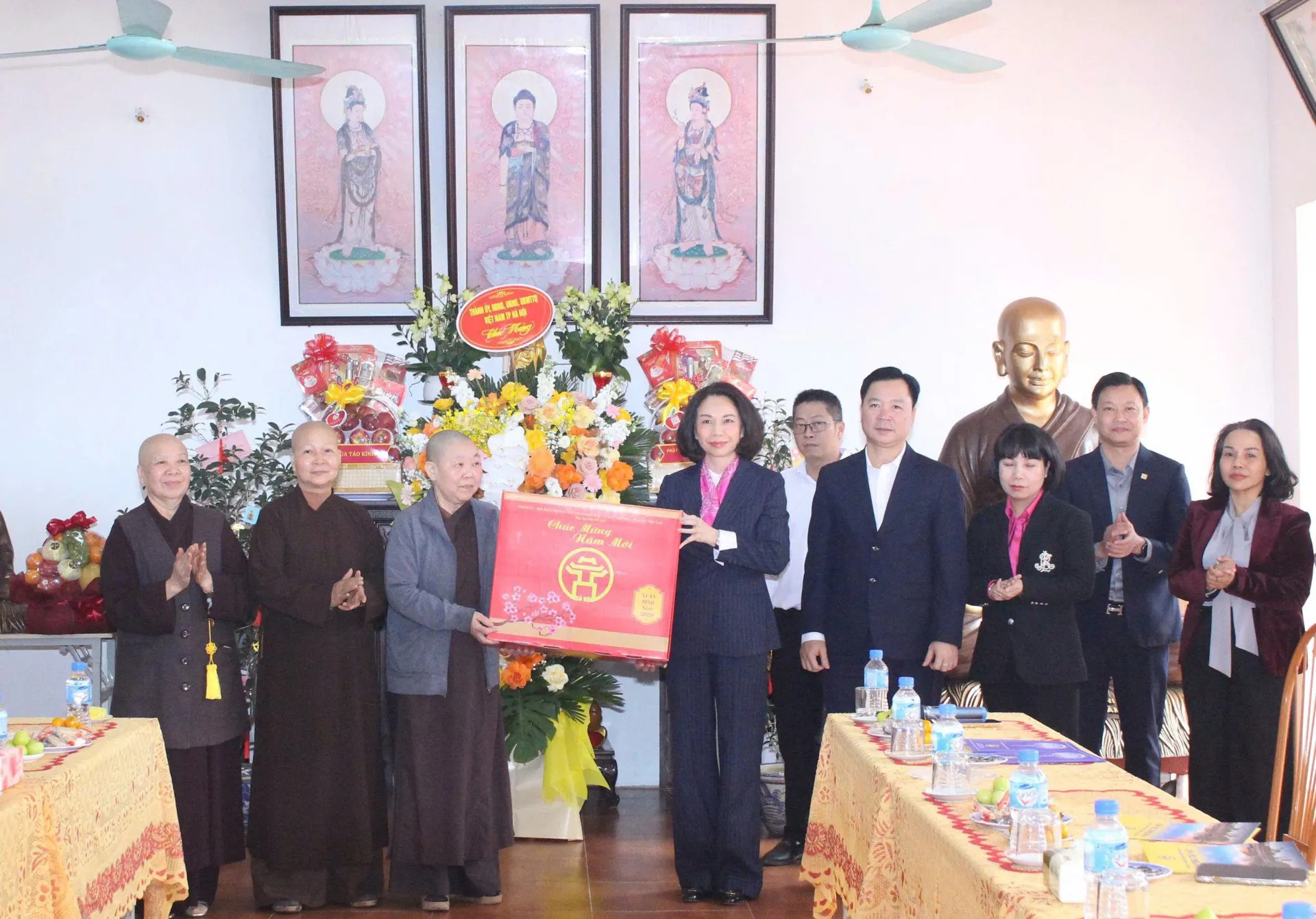 Phó Chủ tịch UBND Thành phố Vũ Thu Hà đến thăm, chúc Tết một số đơn vị trên địa bàn Thành phố, trong đó có chùa Kim Liên (phường Tây Hồ)