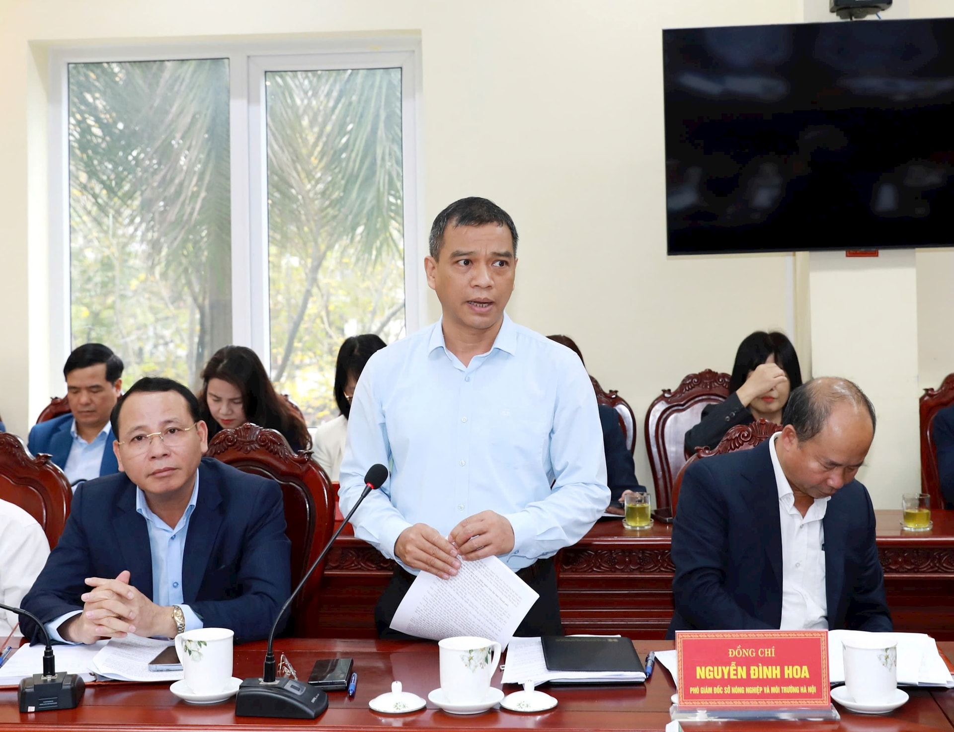 Lãnh đạo Sở Nông nghiệp và Môi trường phát biểu tại buổi làm việc. Ảnh: Sơn Tùng