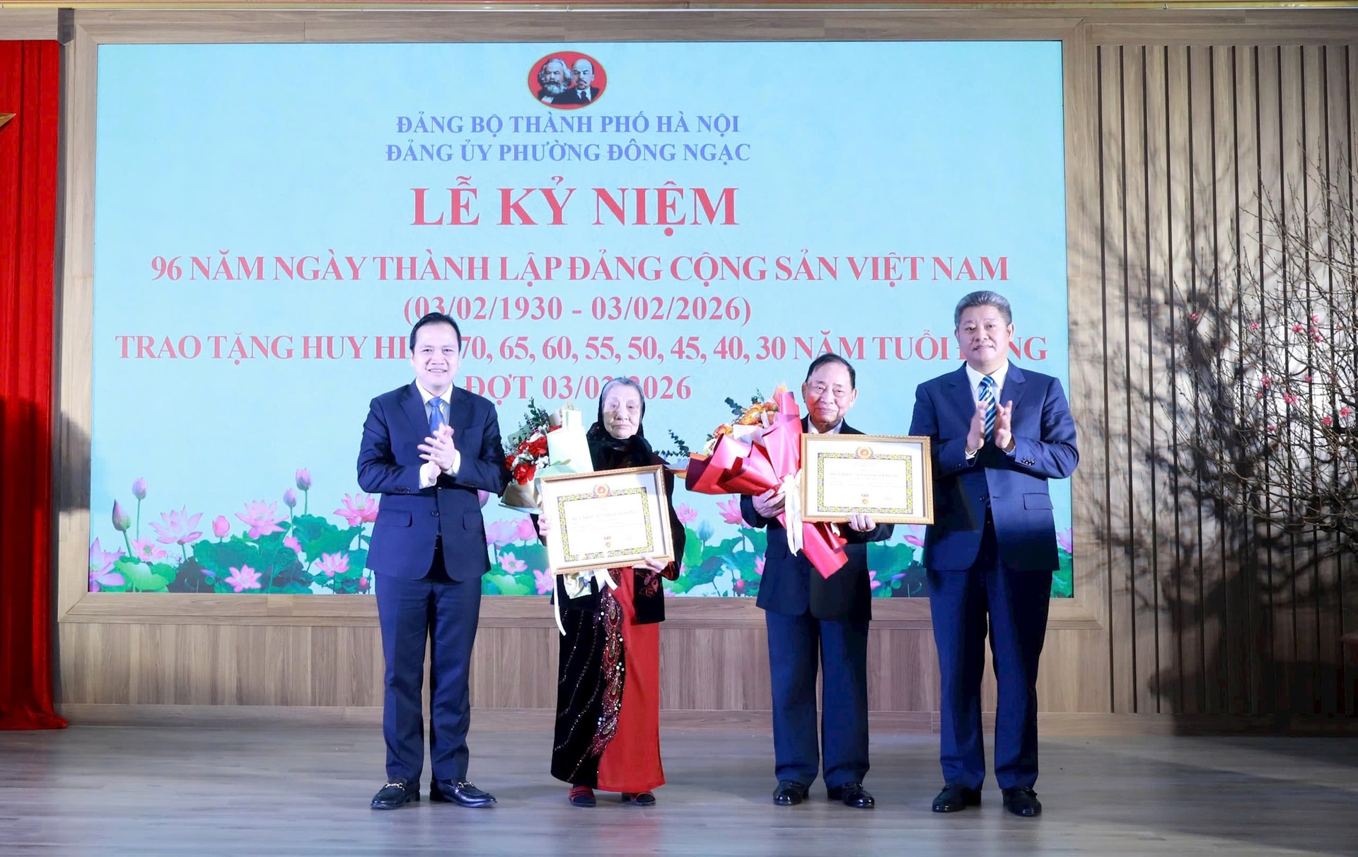 Tại buổi lễ, Đảng ủy phường Đông Ngạc đã trao Huy hiệu Đảng tặng 97 đảng viên, trong đó, có 2 đảng viên nhận Huy hiệu 70 năm tuổi Đảng; 1 đảng viên 65 năm tuổi Đảng; 7 đảng viên 60 năm tuổi Đảng…