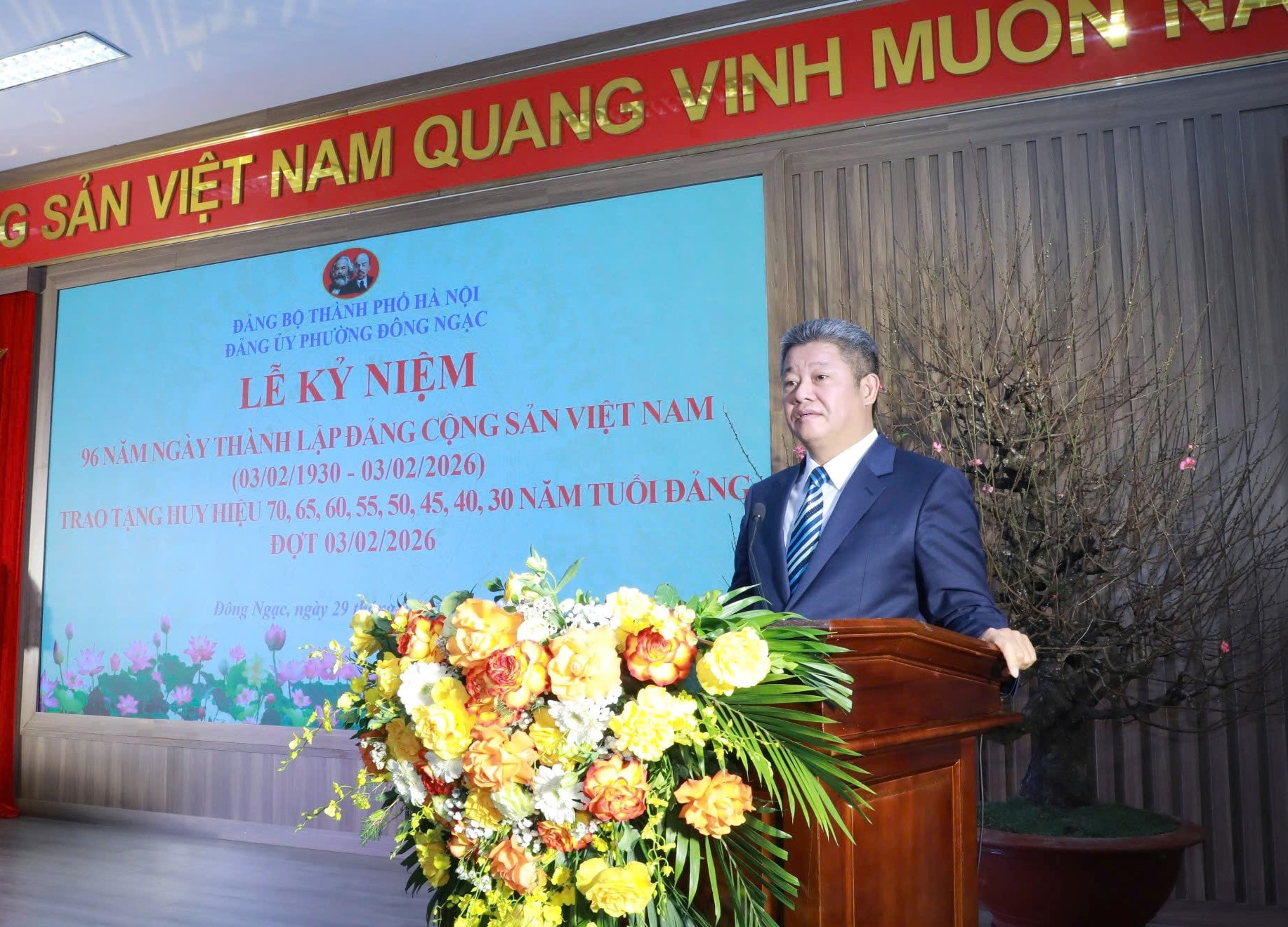 Ôn lại truyền thống vẻ vang của Đảng, Bí thư Đảng ủy, Chủ tịch HĐND phường Đông Ngạc Ngô Văn Nam khẳng định, trải qua 96 năm xây dựng và trưởng thành, Đảng ta không ngừng nâng cao vai trò lãnh đạo, uy tín và sức mạnh bằng bản lĩnh chính trị vững vàng, trí tuệ, đường lối đúng đắn và mối quan hệ máu thịt với nhân dân. Dưới sự lãnh đạo của Đảng, đất nước và dân tộc ta đã giành được nhiều thắng lợi vĩ đại, có ý nghĩa lịch sử sâu sắc.