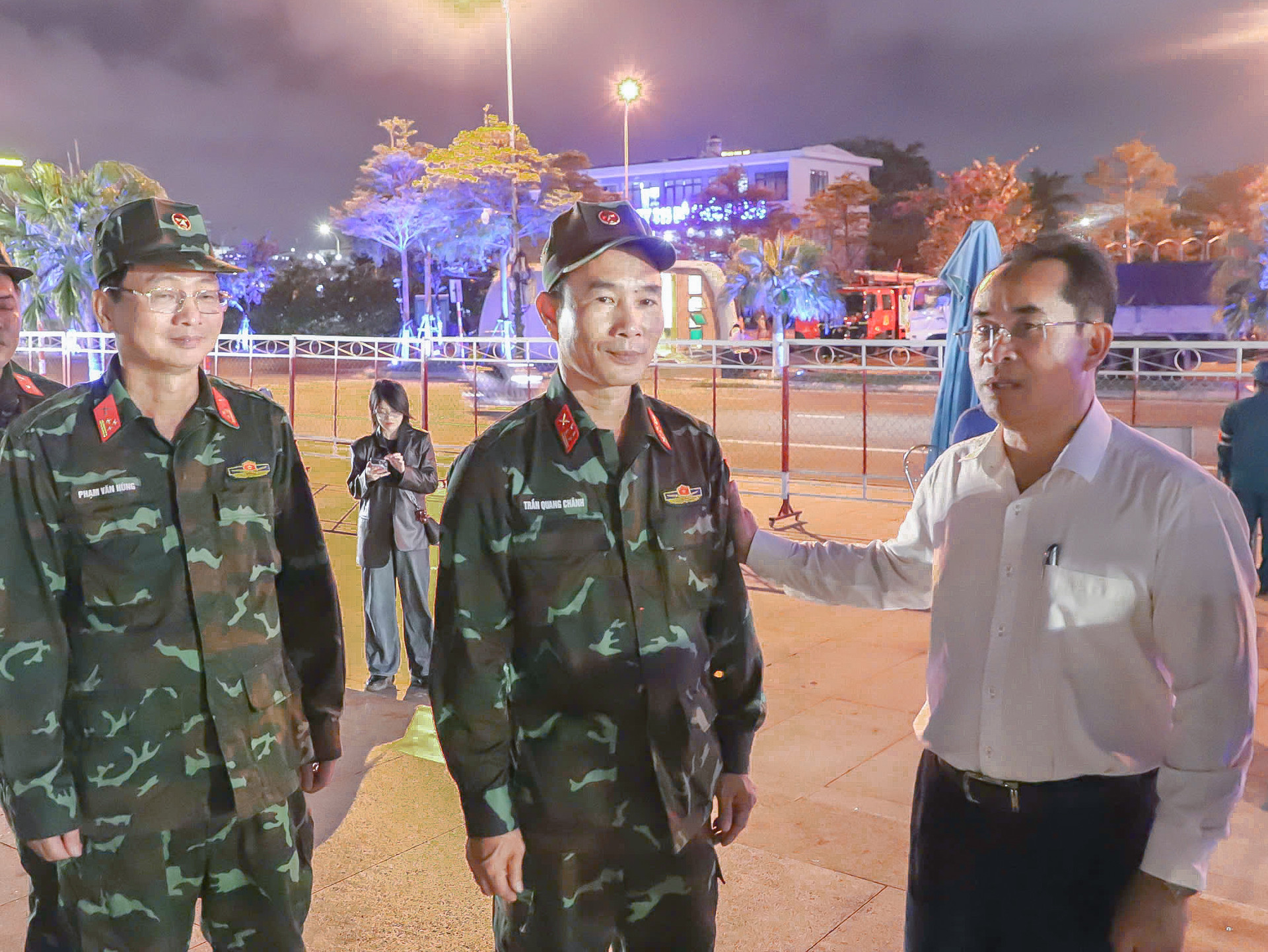 Thăm, động viên cán bộ, chiến sĩ Bộ Chỉ huy Quân sự thành phố Đà Nẵng đang làm nhiệm vụ chuẩn bị tại điểm bắn pháo hoa số 2, Phó Chủ tịch UBND thành phố Trần Anh Tuấn biểu dương tinh thần trách nhiệm, sự chủ động, sẵn sàng của lực lượng làm nhiệm vụ.