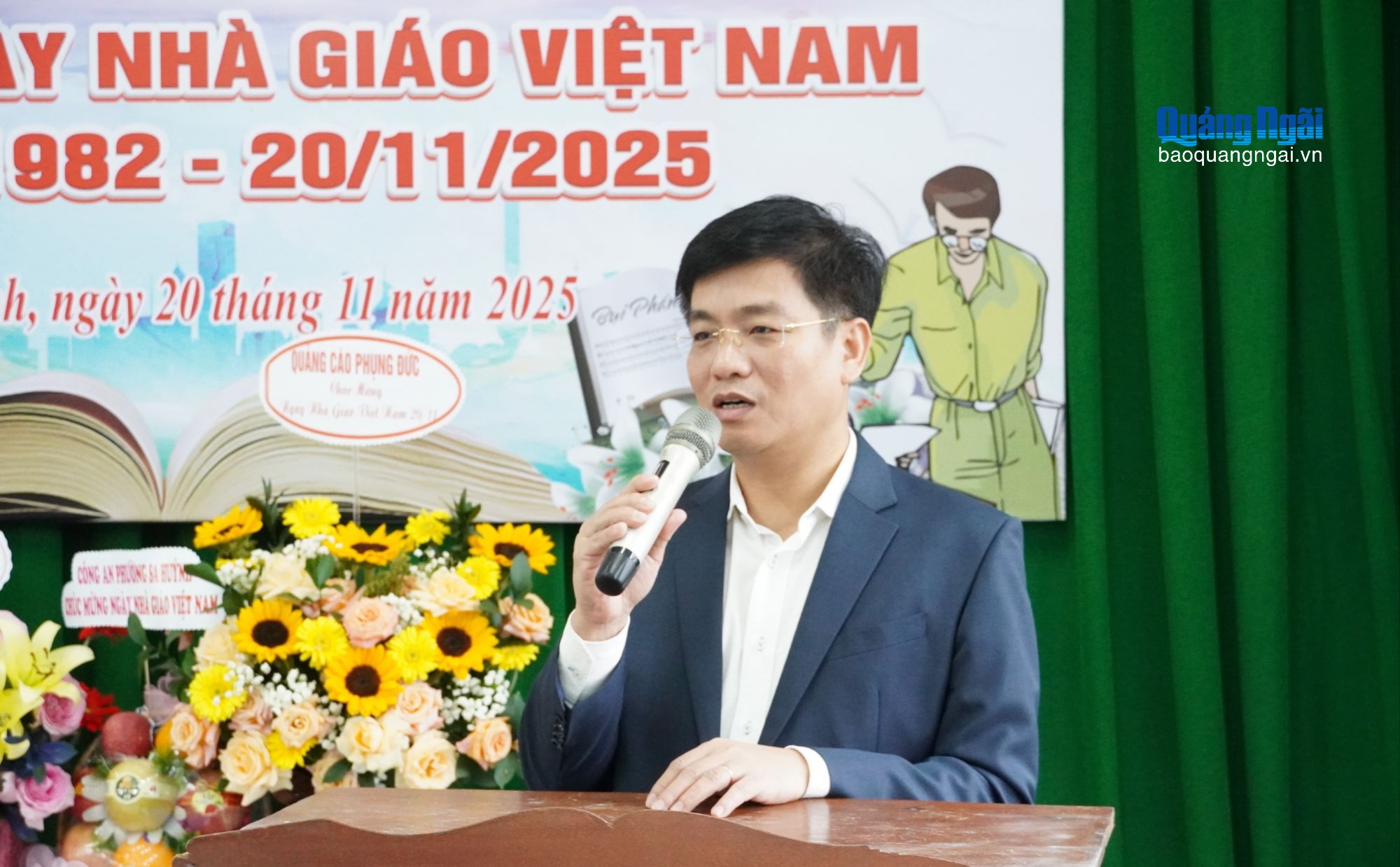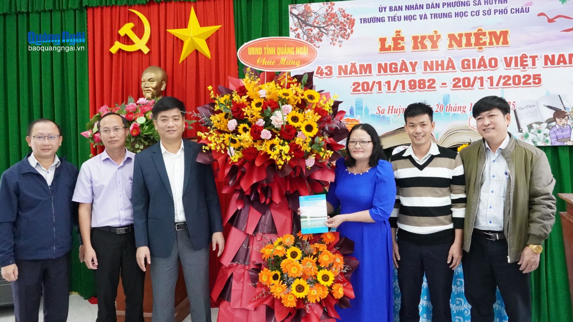 Nhân kỷ niệm 43 năm Ngày Nhà giáo Việt Nam, chiều 20/11, Phó Chủ tịch UBND tỉnh Đỗ Tâm Hiển đến thăm, chúc mừng tập thể lãnh đạo, giáo viên, nhân viên Trường Tiểu học và THCS Phổ Châu, phường Sa Huỳnh.