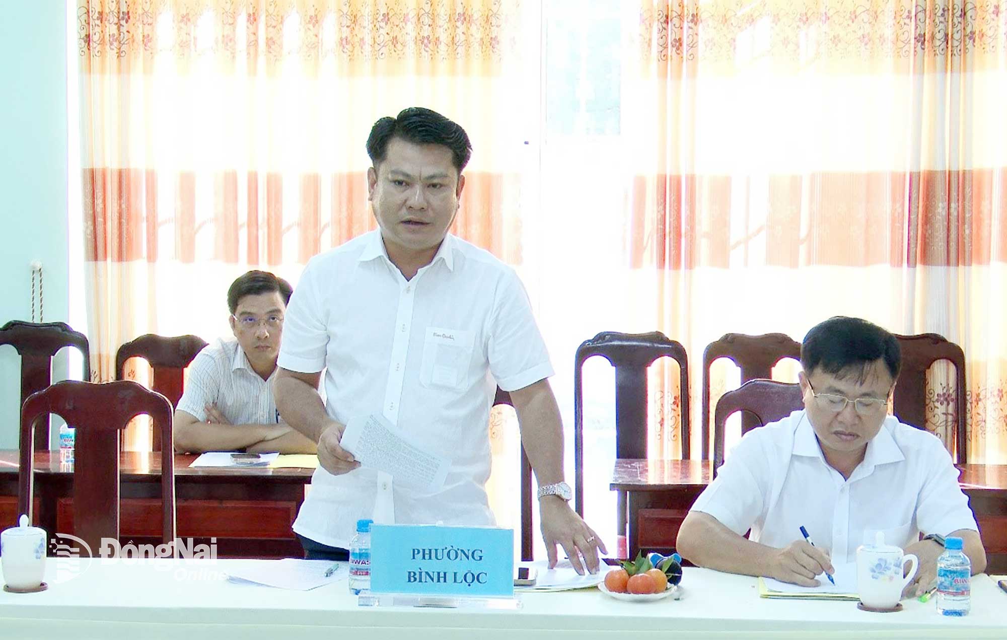 Tại buổi làm việc, đoàn đã nghe lãnh đạo UBND phường Bảo Vinh báo cáo vướng mắc của dự án nhà ở xã hội như việc chưa bàn giao tiếp nhận hạ tầng kỹ thuật, đầu tư hạ tầng xã hội, giao thông kết nối. Lãnh đạo UBND phường Long Khánh báo cáo tiến độ bồi thường các dự án giao thông trọng điểm, công tác chỉnh trang đô thị. Lãnh đạo UBND phường Bình Lộc báo cáo việc tổ chức lại không gian quy hoạch, quản lý cấp phép xây dựng, cấp nước, bồi thường các dự án trọng điểm, đầu tư công.