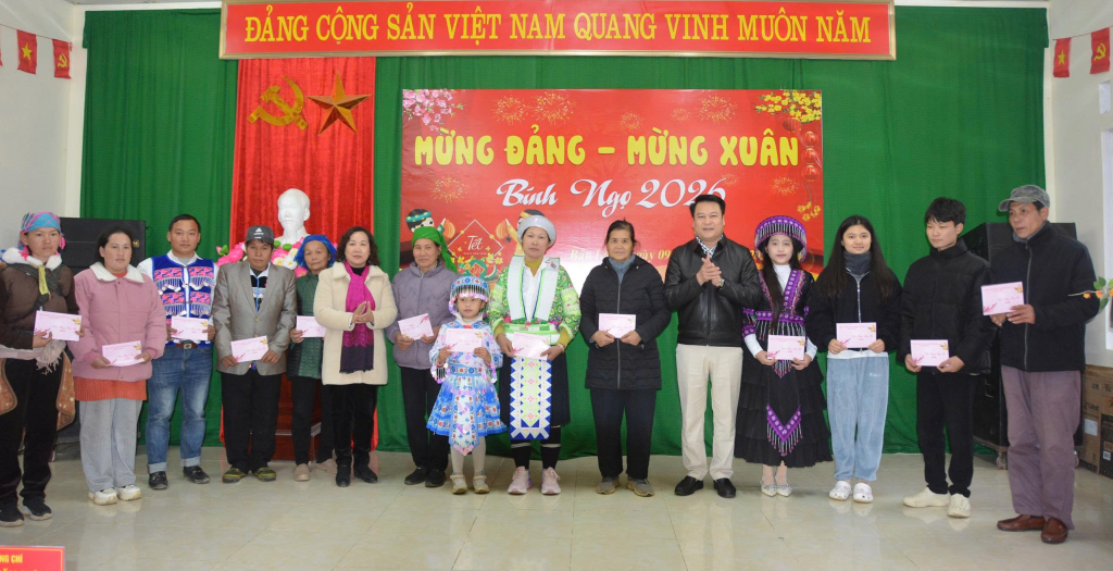 Nhân dịp này, đoàn công tác trao tặng 78 suất quà, mỗi suất trị giá 500 nghìn đồng cho nhân dân xóm Bản Làng và 6 xóm lân cận; trao tặng 1 thùng quà và 5 triệu đồng tiền mặt cho xóm Bản Làng.