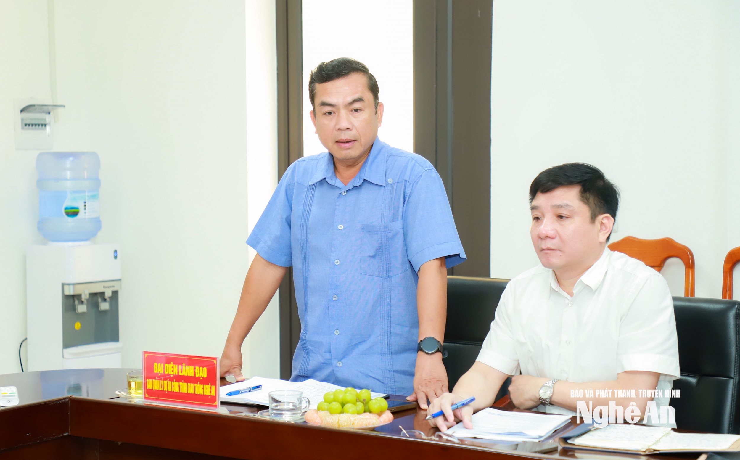 Đồng chí Hoàng Sỹ Kiện - Giám đốc Ban Quản lý dự án công trình giao thông Nghệ An phát biểu tại cuộc làm việc. Ảnh: Thành Duy