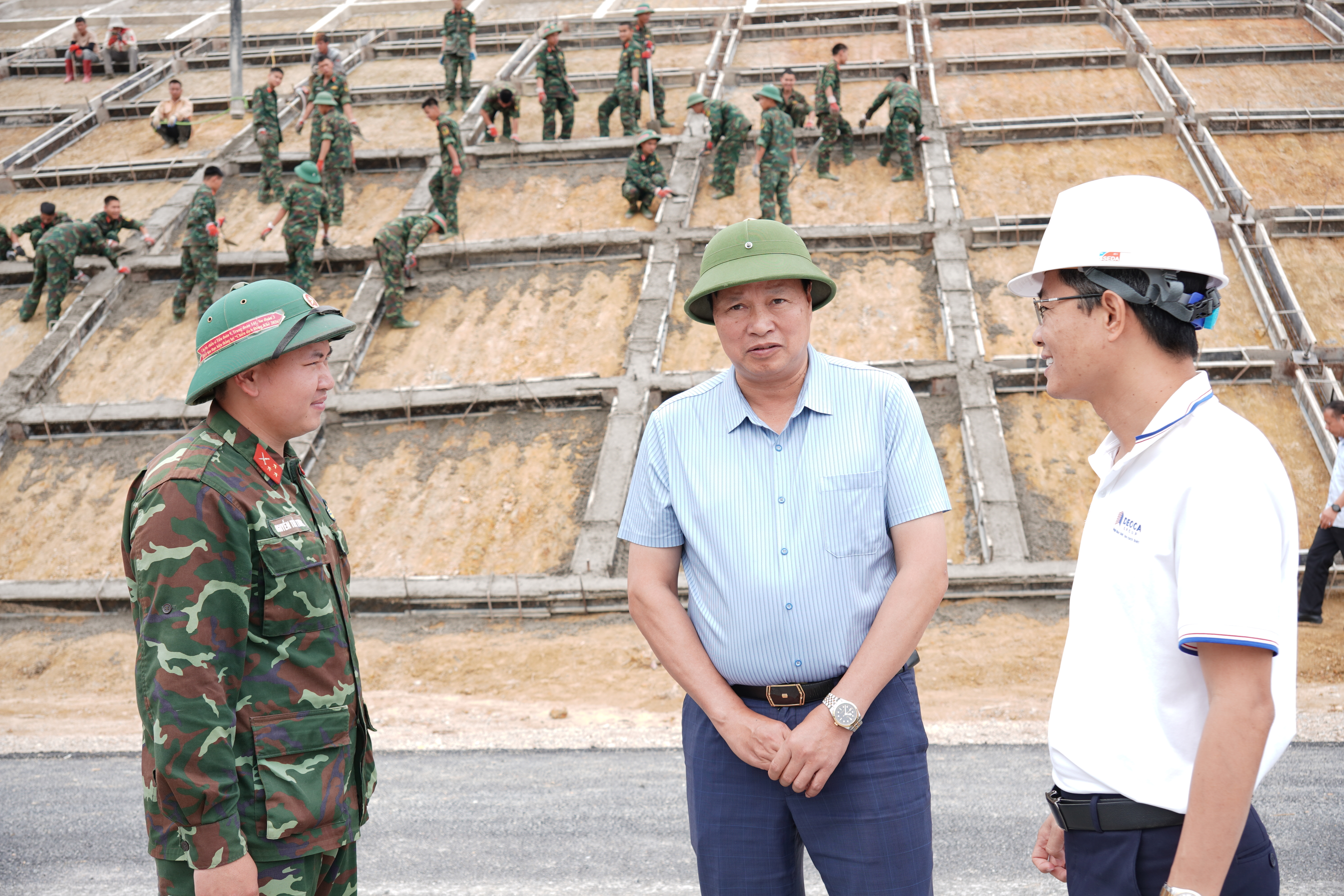 Thăm các lực lượng trên công trường, Phó Chủ tịch UBND tỉnh Hoàng Văn Thạch chia sẻ với những vất vả của công nhân, động viên các lực lượng khắc phục khó khăn, đẩy nhanh tiến độ, đảm bảo chất lượng, vì mục tiêu chung của dự án.