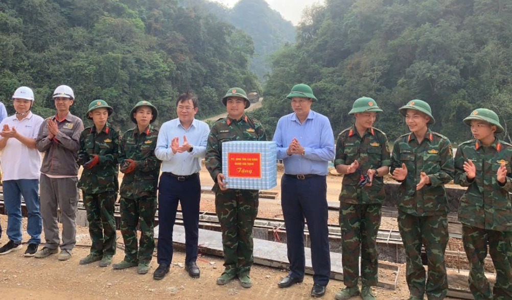 Nhân dịp này, Phó Chủ tịch UBND tỉnh Hoàng Văn Thạch đã tặng quà động viên các kỹ sư, công nhân và lực lượng quân đội đang làm việc trên công trường.
