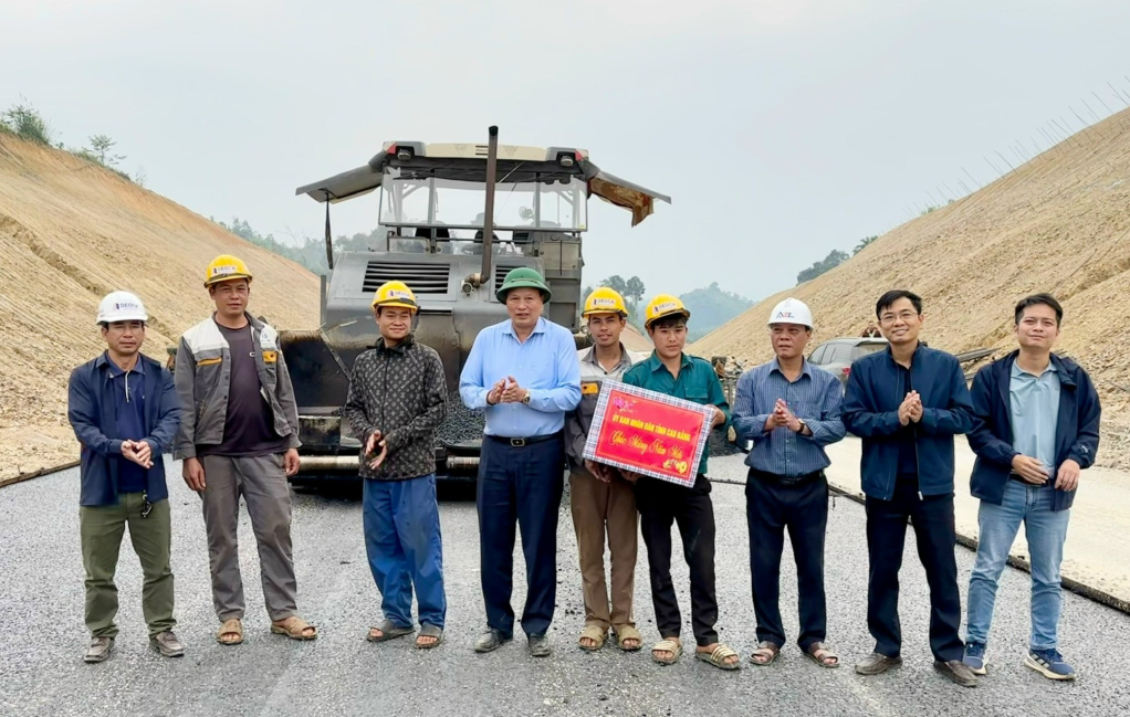 Phó Chủ tịch UBND tỉnh Hoàng Văn Thạch lưu ý: làm tốt hơn, tiến độ nhanh hơn nhưng phải bảo đảm chất lượng, kỹ mỹ thuật, an toàn công trình, an toàn giao thông và vệ sinh môi trường, phấn đấu hoàn thành giai đoạn 1 cao tốc Đồng Đăng - Trà Lĩnh dịp 19/5 tới đây.