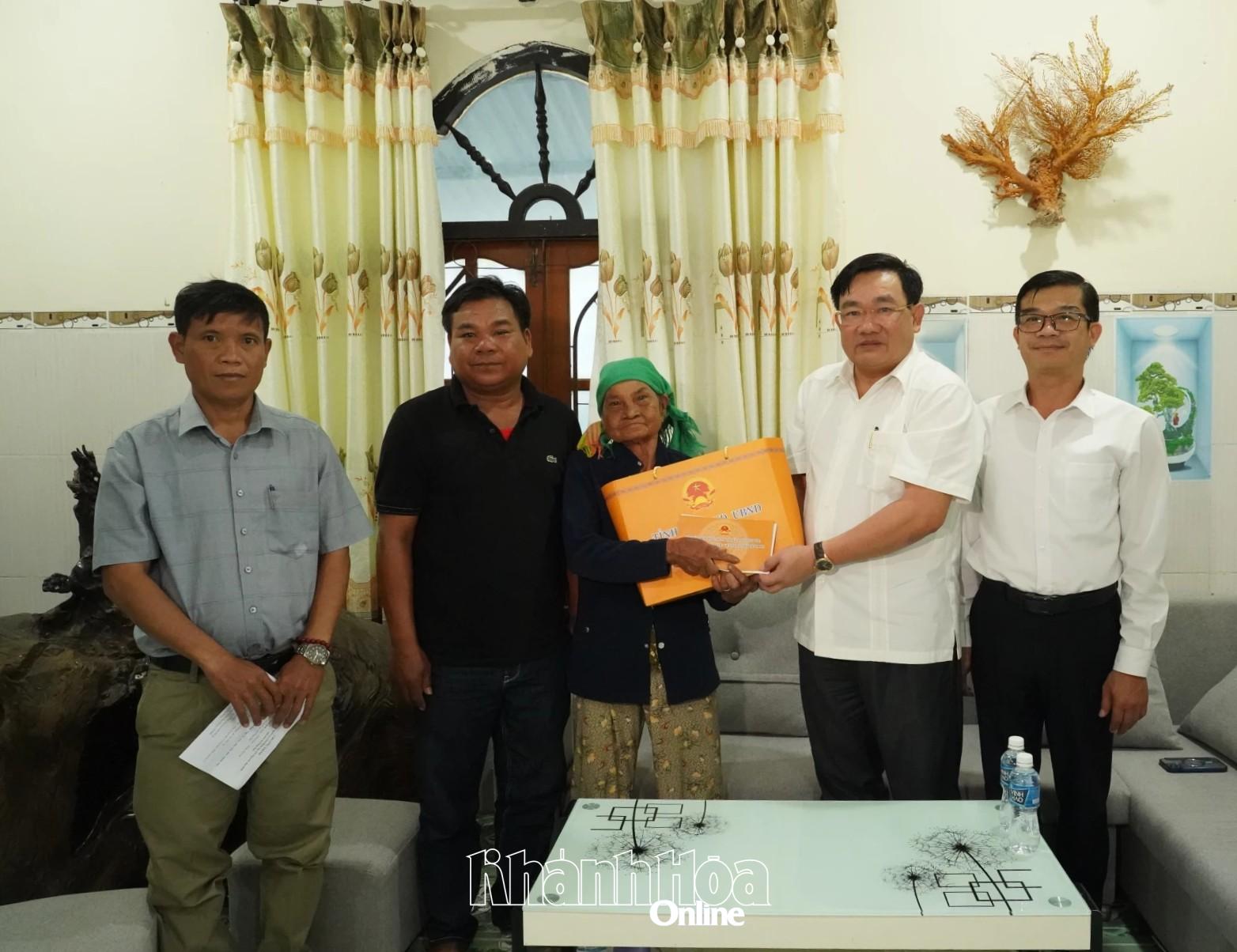 Phó Chủ tịch UBND tỉnh Trịnh Minh Hoàng tặng quà cho gia đình ông Chamaleá Quyên.